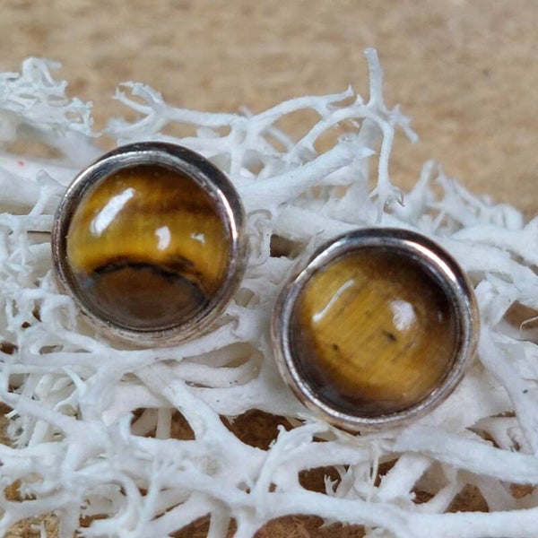 Prachtige Tijgeroog oorbellen met 925 zilver. Diameter is 5mm