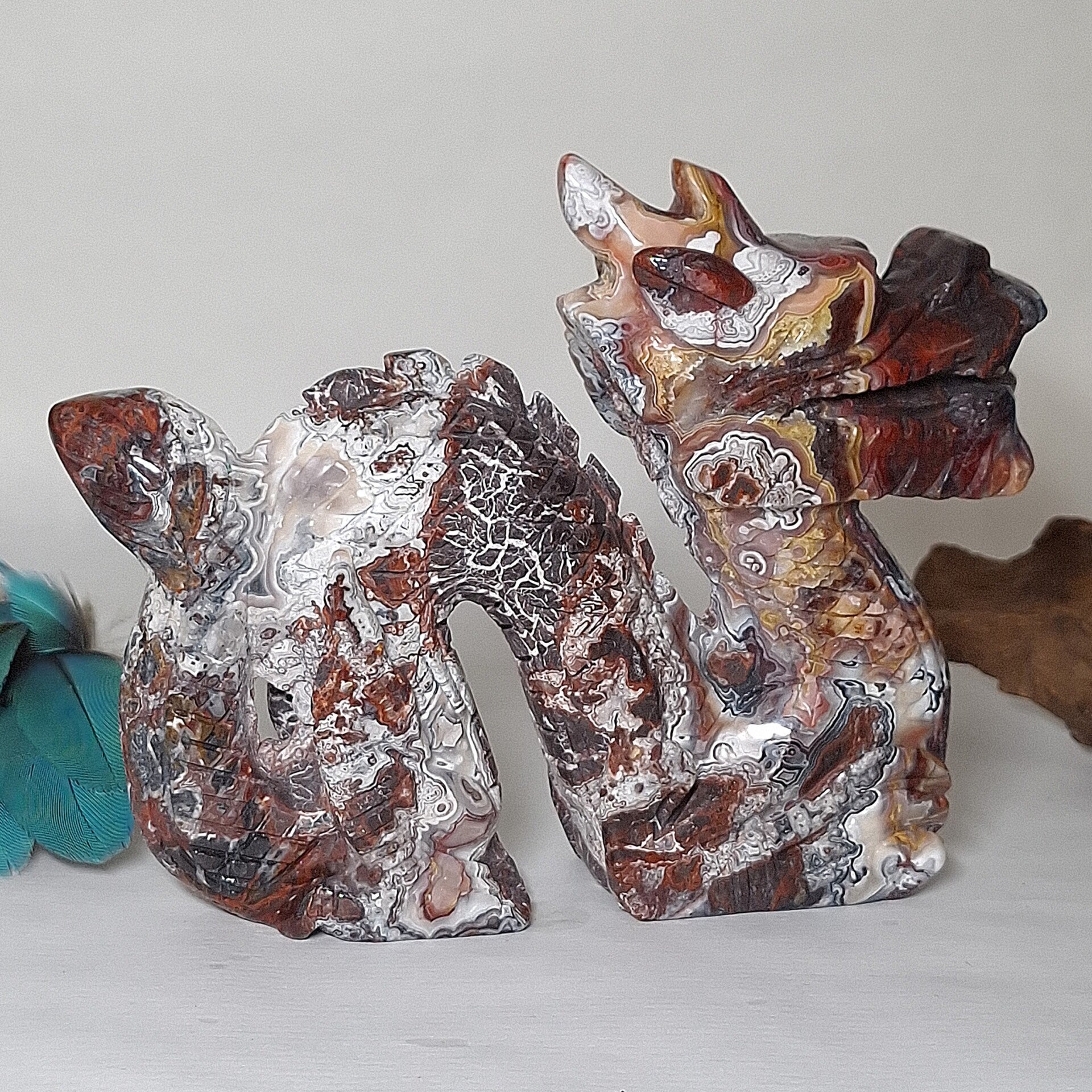 Mexican Agate Chinese draak, fantastische kwaliteit met hele mooie patronen 16,5 cm