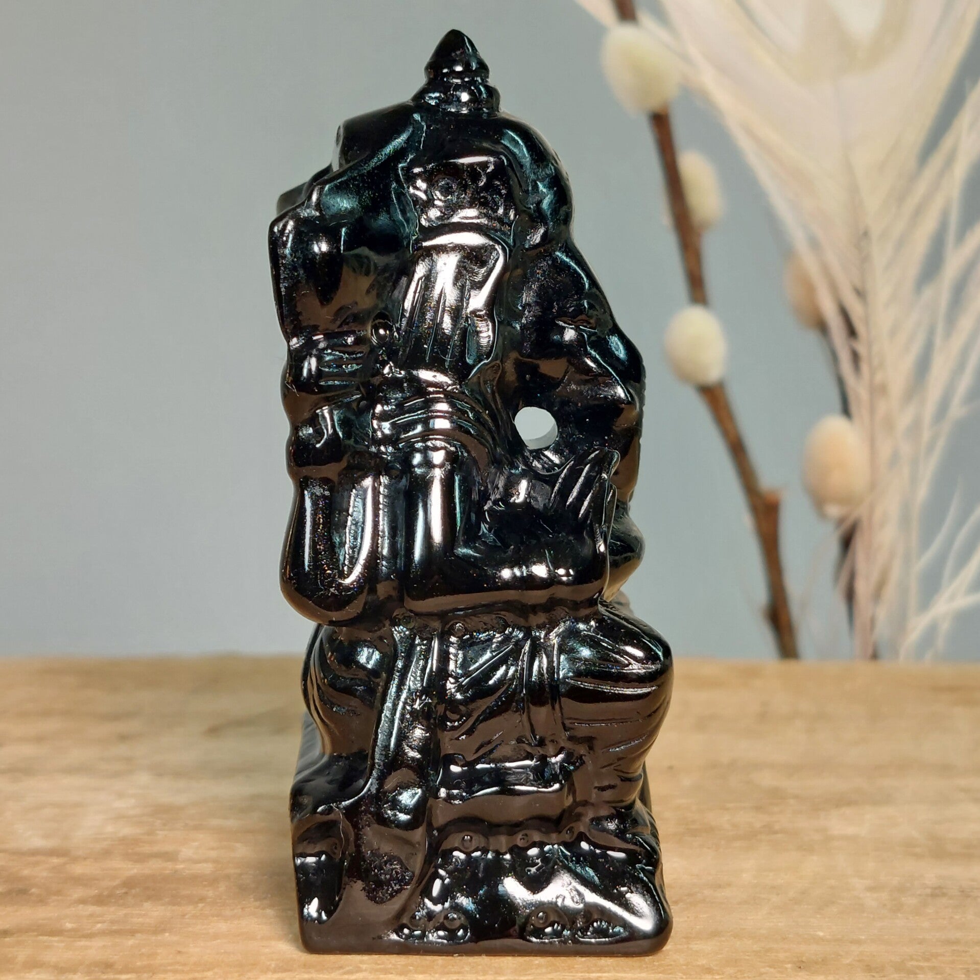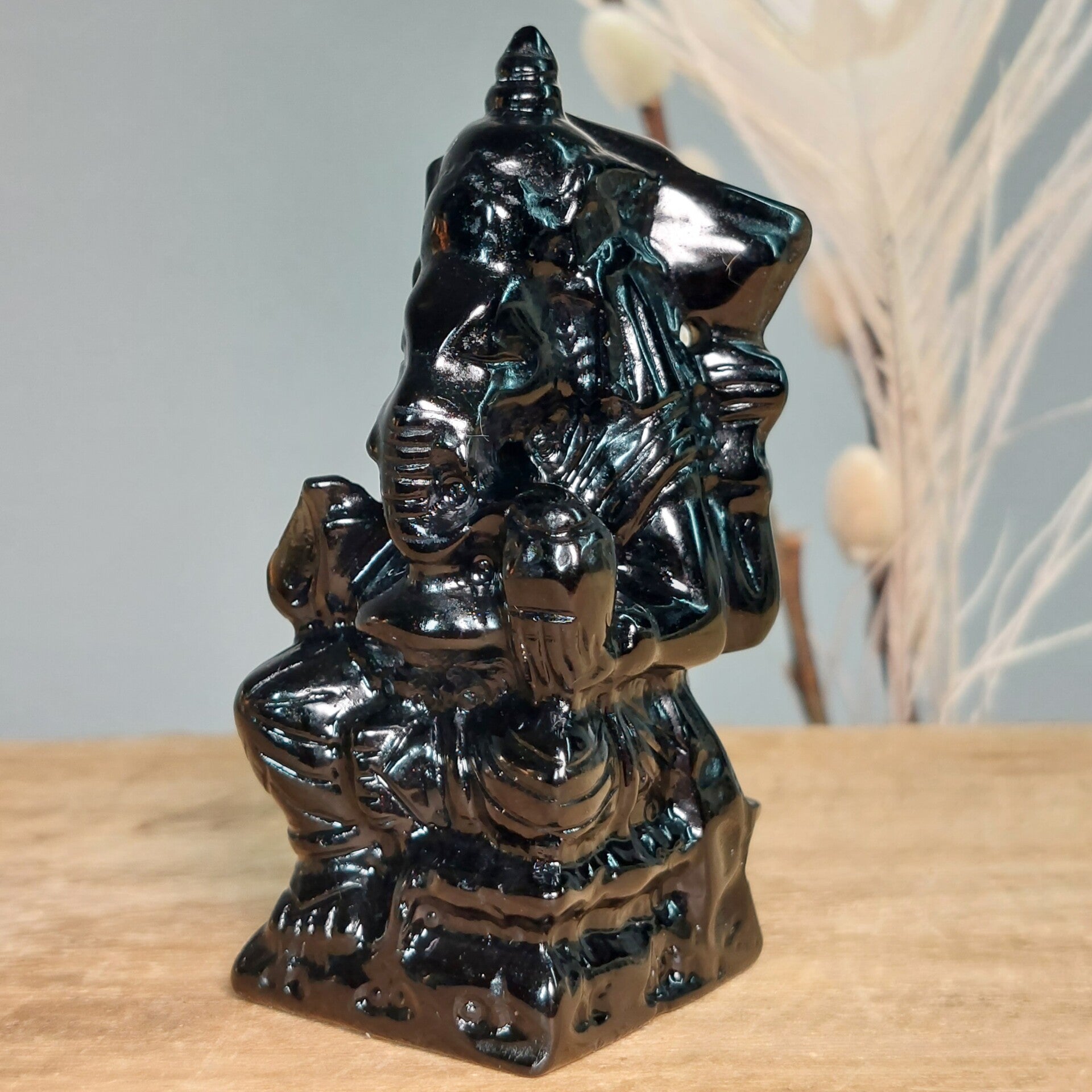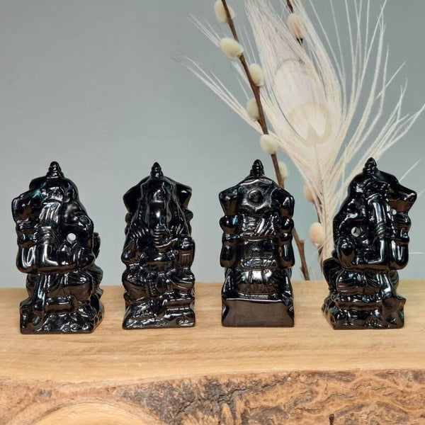 Prachtige Obsidiaan Ganesha van 8 cm. Zeer gedetailleerd beeld.