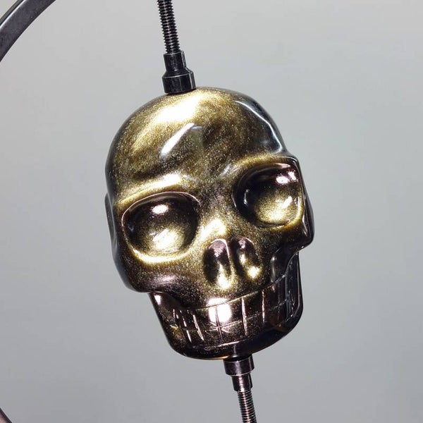 Goud Obsiidiaan schedel. Prachtige two sided skull met prachtige "flash". Top kwaliteit.