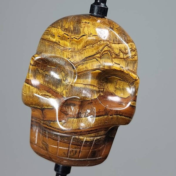 Prachtige skull die aan beide kanten een gezicht heeft dus perfect om ergens neer te zetten in bijvoorbeeld de maanstandaard. Bijzonder mooi als toevoeging op het interieur, van alle kanten even prachtig. De standaard is maar liefst 25 cm en de skull zo'n 7 cm en 220 gram.