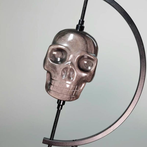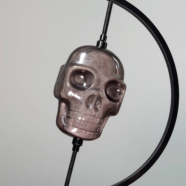 Zilver Obsidiaan two sided full flash skull. Top kwaliteit