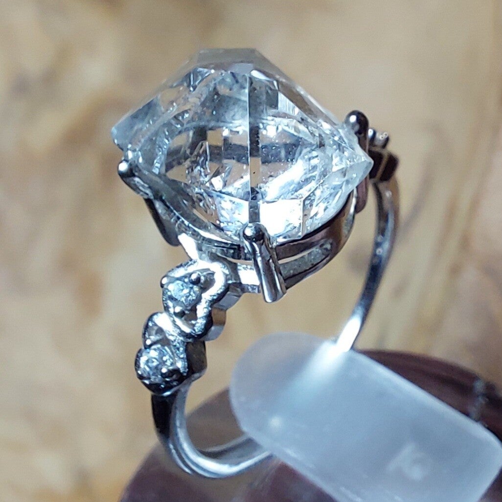 Herkimer diamant ring 925 zilver met Zirkonen, prachtige kwaliteit. Verstelbaar.