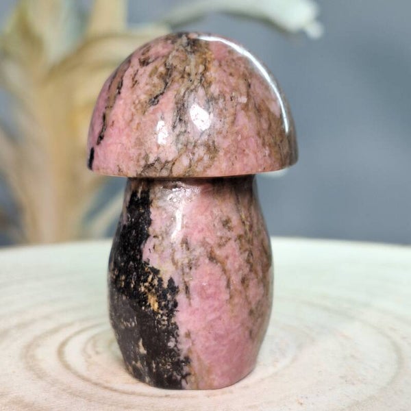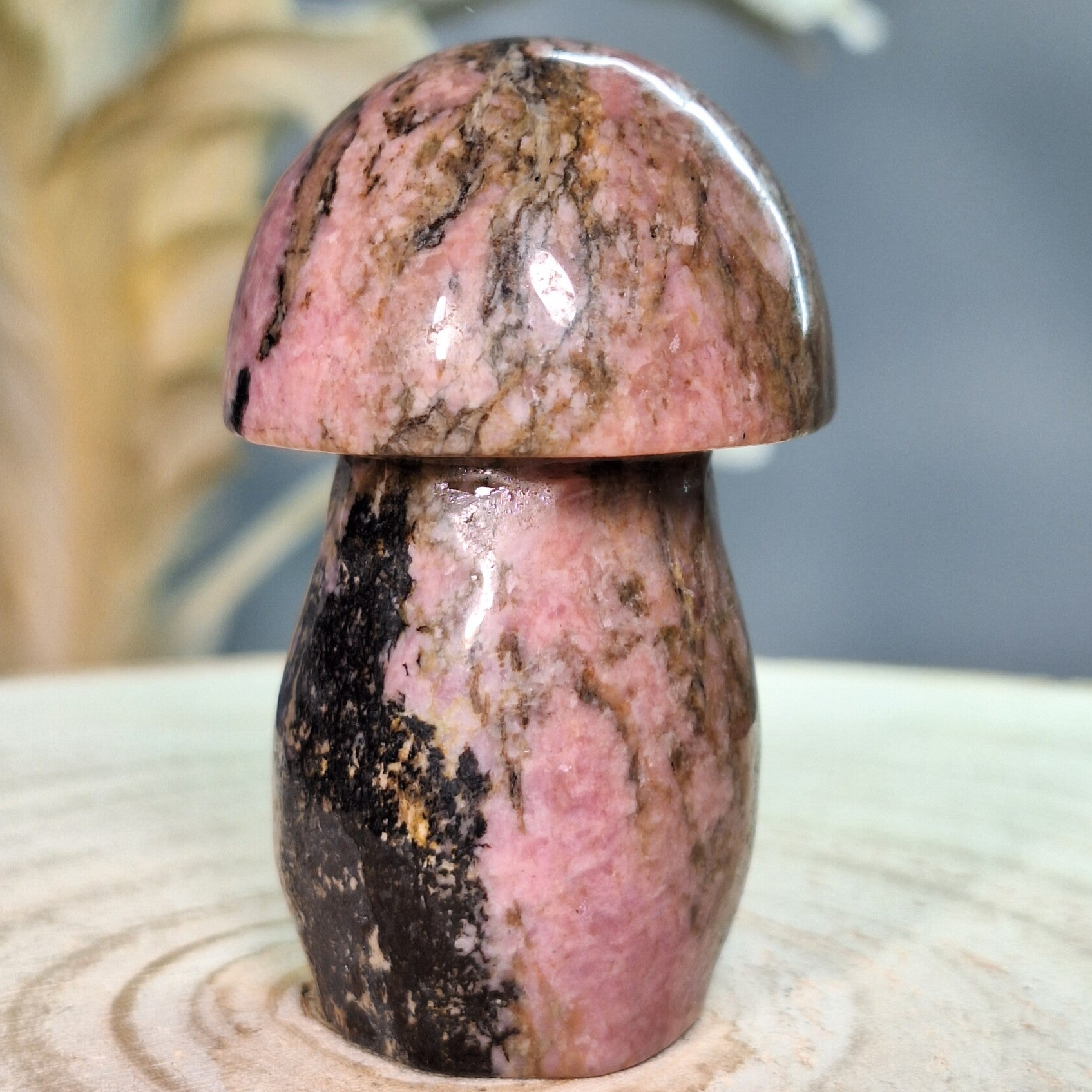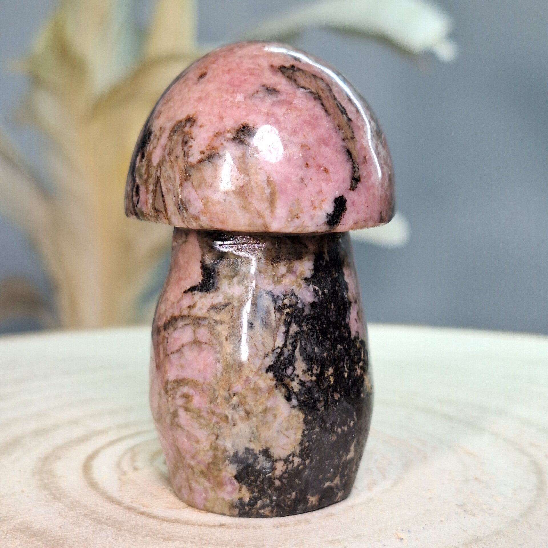 Rhodoniet paddenstoel 6,1 cm met prachtige dendriet tekening