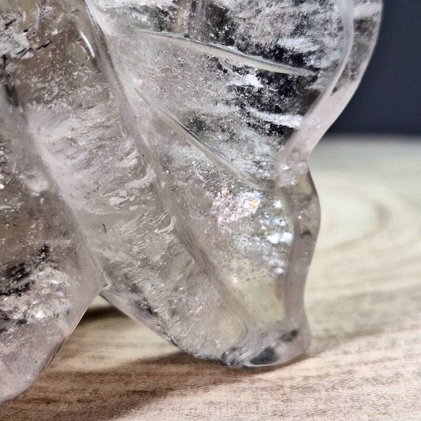 Fantastische mooie heldere kwaliteit Bergkristal Fairy. Bekijk dit mooie exemplaar in de zon en je zult de magie voelen, er zullen overal prachtige regenboogjes en sprankelingen tevoorschijn komen. Zeer mooie handgeslepen Fairy van 13,5 (diagonaal)x 9,5 x 9 cm. Laat je betoveren door deze prachtige Fairy. In het echt nog meer transparant dan op de foto's te zien is.