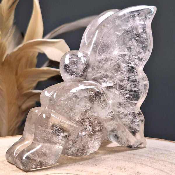Bergkristal Fairy /Fee / vlinder zeer mooi met 🌈 Handgeslepen gedetailleerde schoonheid van 13,5cm