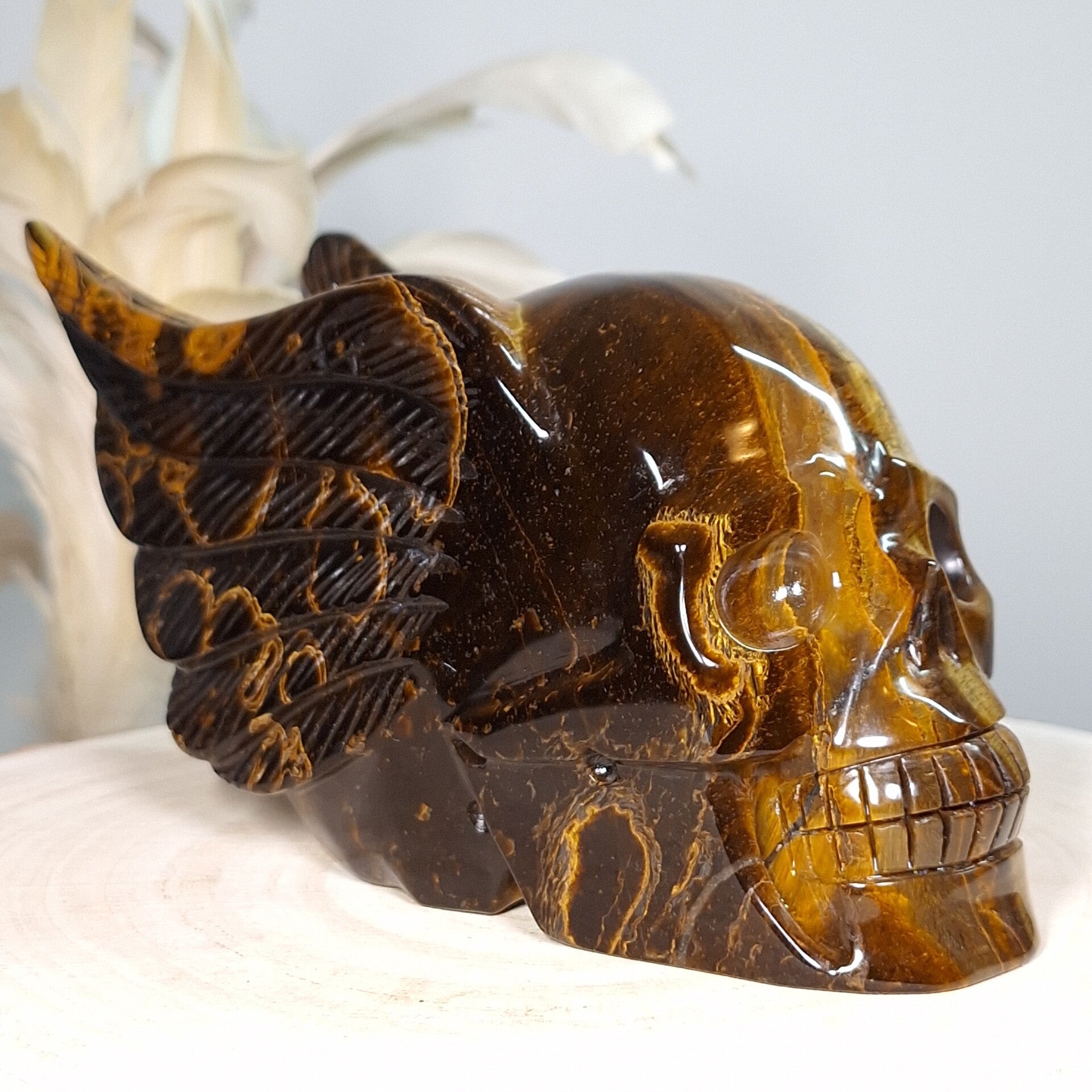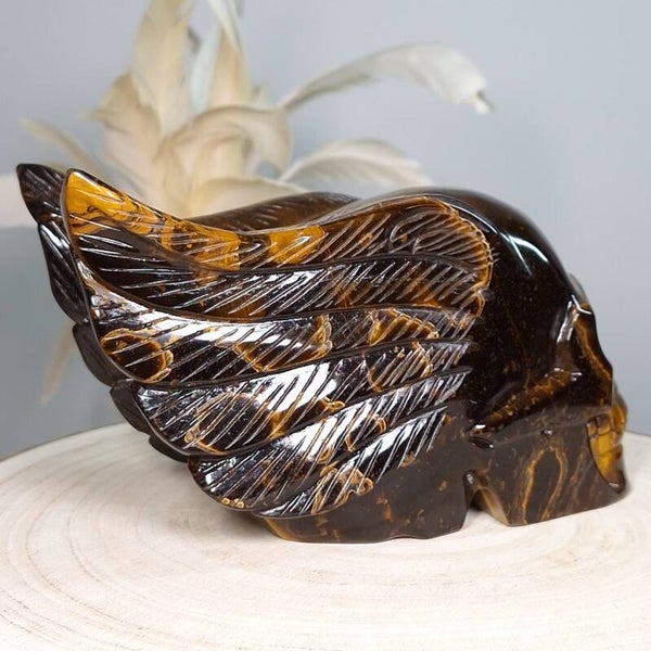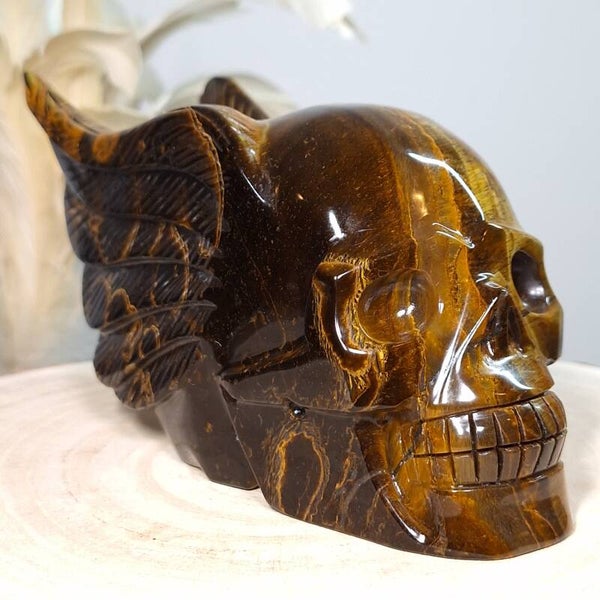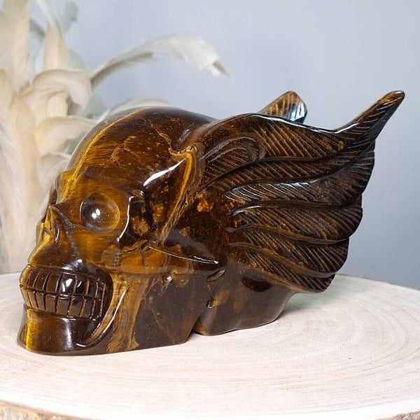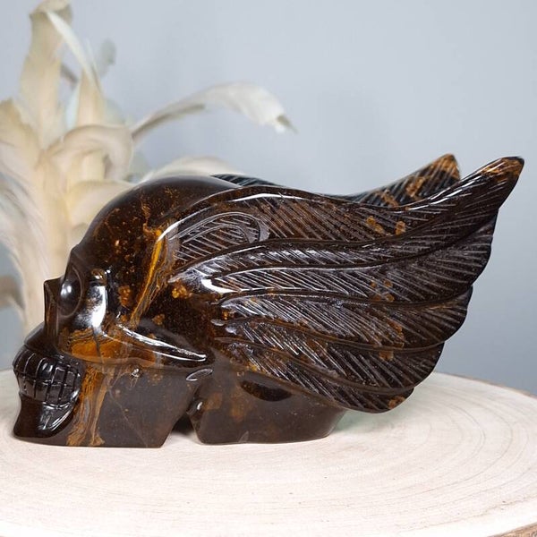Tijgeroog skull with wings ♡ Prachtige schedel van maar lifest 18 cm