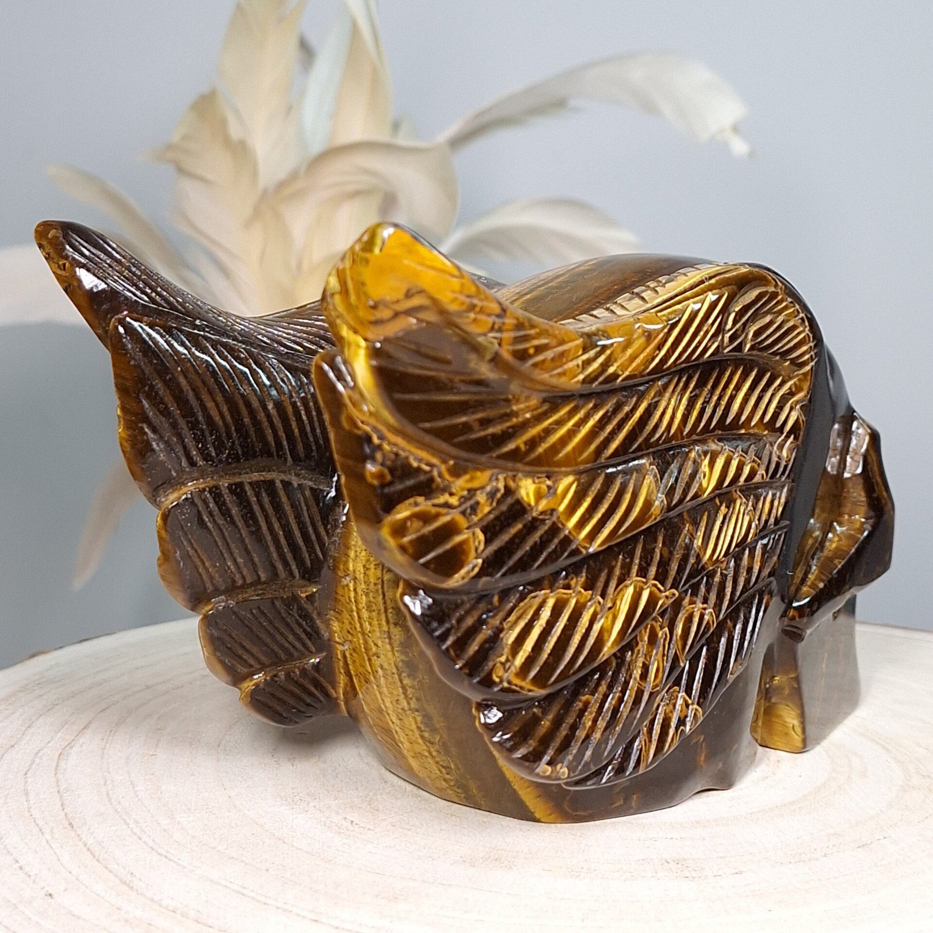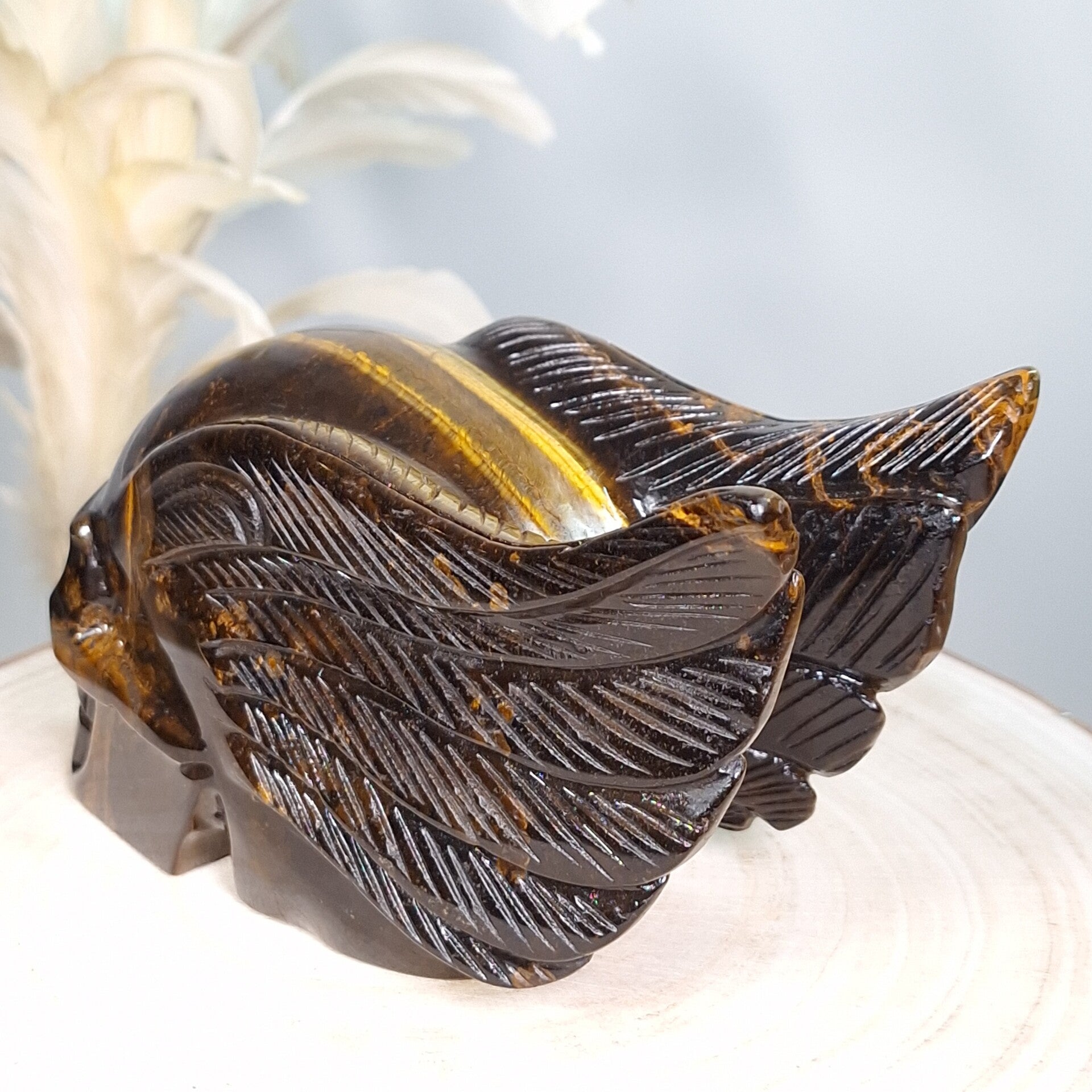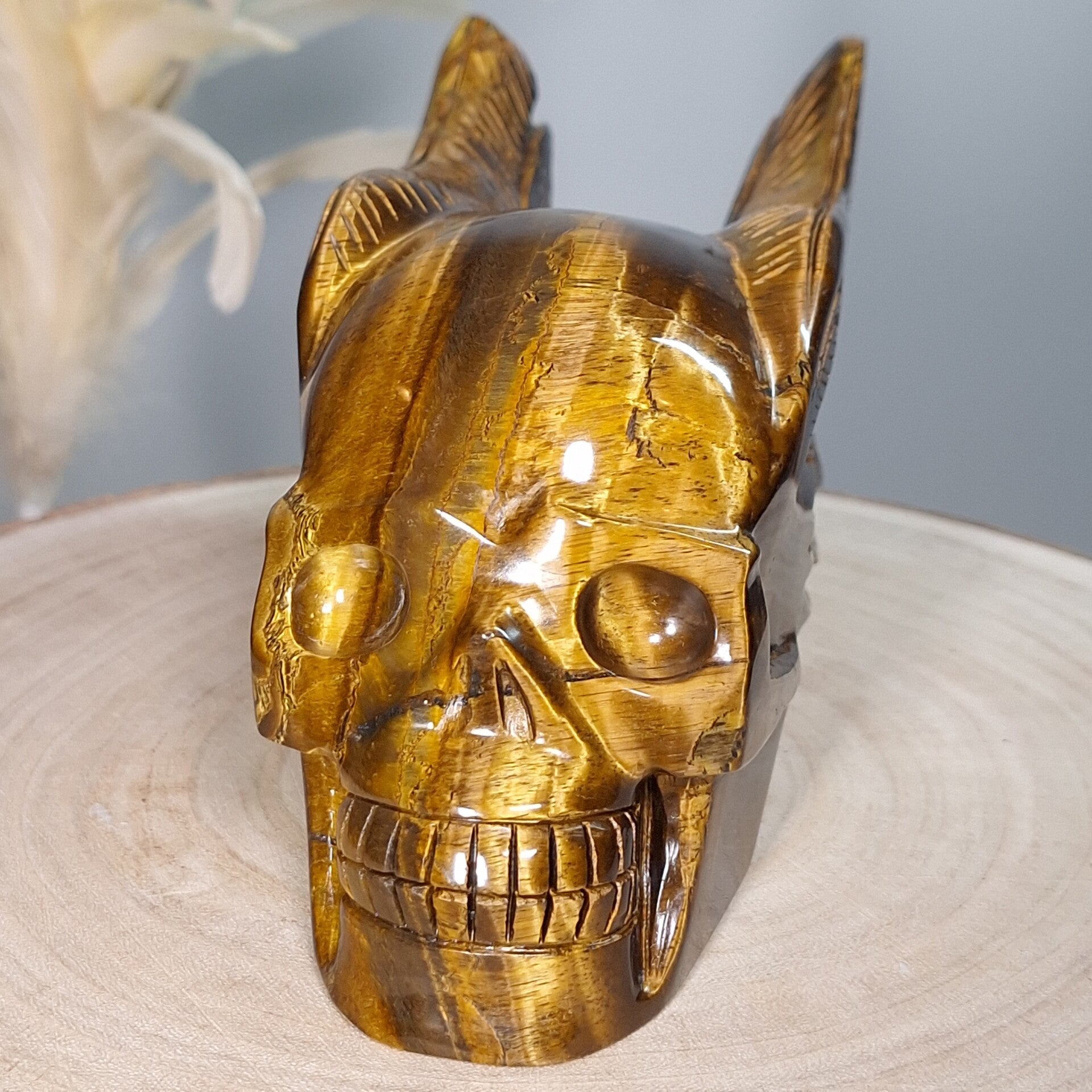 Tijgeroog skull with wings ♡ Prachtige schedel van maar lifest 18 cm