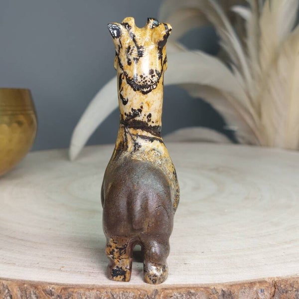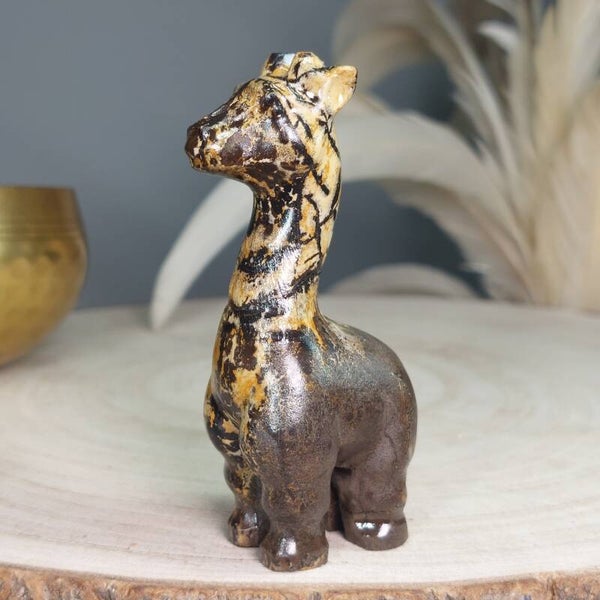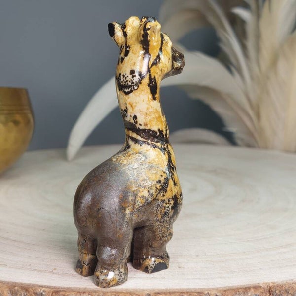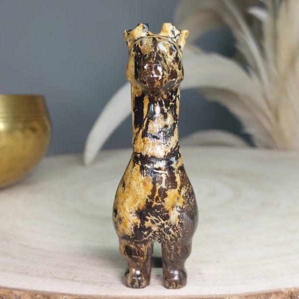 Prachtige Astralische Landschaps Jaspis Giraffe. Zeer bijzondere handgeslepen beeldje van c.a 8cm met prachtige warme aarde kleuren en mooie patronen.