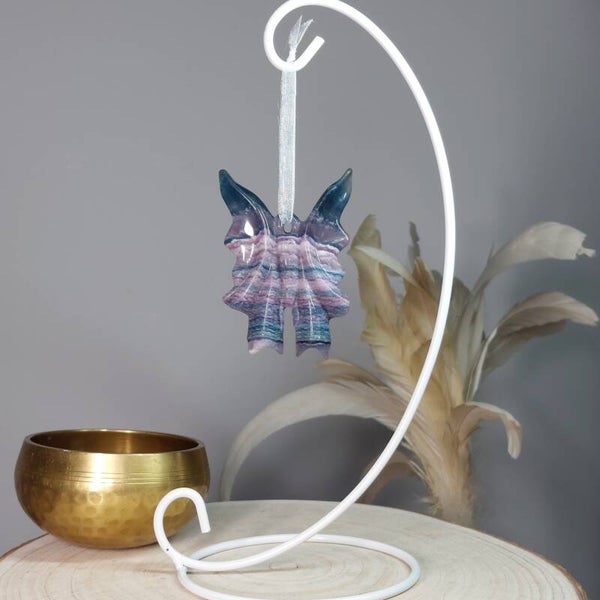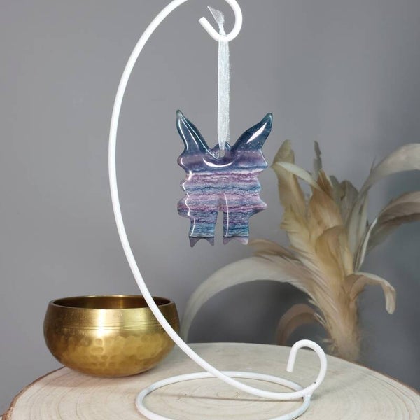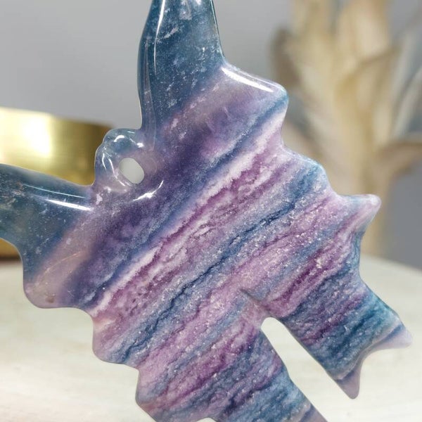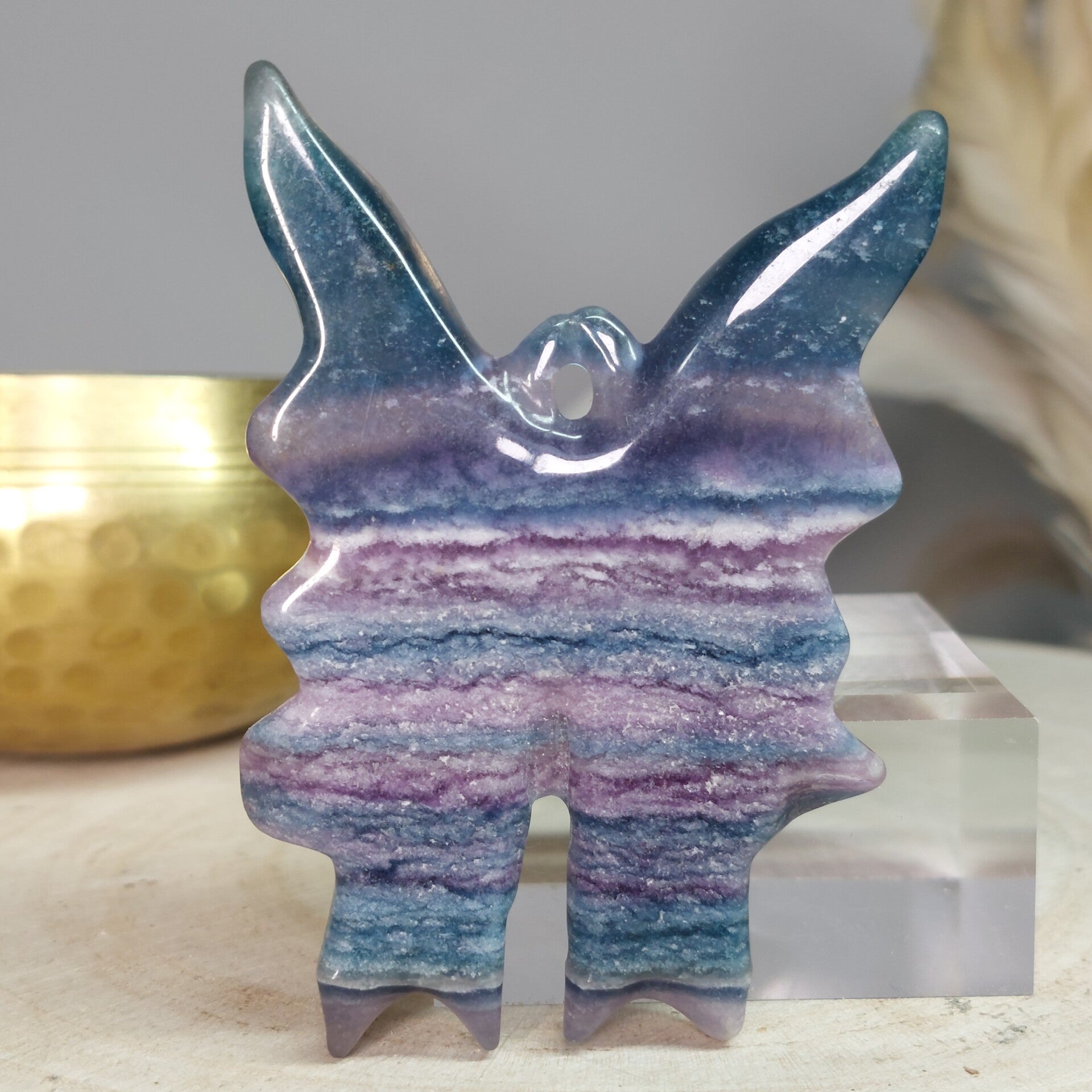 Prachtige vlinder van Fluoriet met zeer mooie kleuren en patronen. Wordt geleverd in cadeaudoosje. De vlinder heeft een opening aan de bovenkant waardoor er gemakkelijk een hanger van gemaakt kan worden, ook voor de liefhebbers van grote juwelen kan deze vlinder ook ontpoppen als een prachtige hanger voor om je nek diagonaal is deze vlinder 9cm en c.a 8x5,5cm