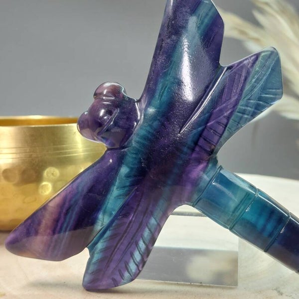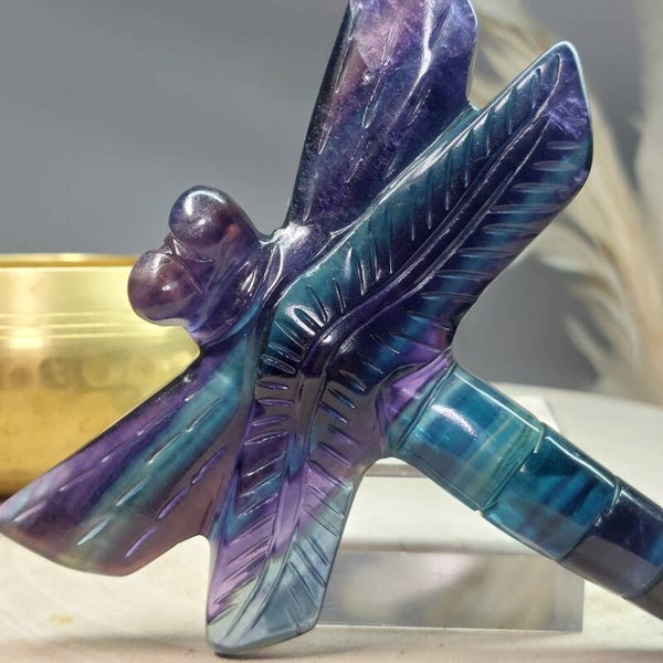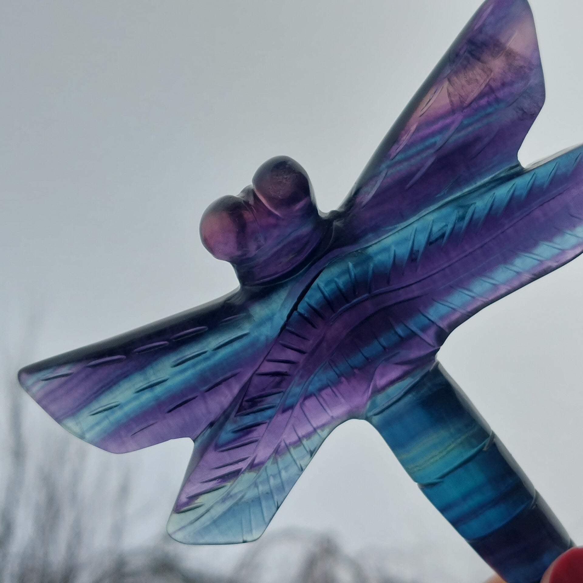 Fluoriet prachtige Libelle 12cm fantastische mooie kwaliteit Regenboog Fluoriet.