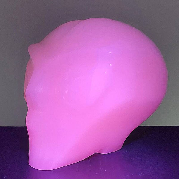 Mangano calciet heeft toch wel iets bijzonders want onder uv licht heeft het ineens een fluoriserende roze en oranje kleur. Tijdelijk wordt deze prachtige skull geleverd met 2 kleine UV lampjes 365nm voor roze reactie en 395nm voor oranje reactie zodat je meteen kunt genieten van het mooie fluoriserende effect van uv licht op de Mangano Calciet. Het mooiste/beste effect krijg je wanneer je de het lampje op de Skull schijnt als het een beetje schemer of donker is.