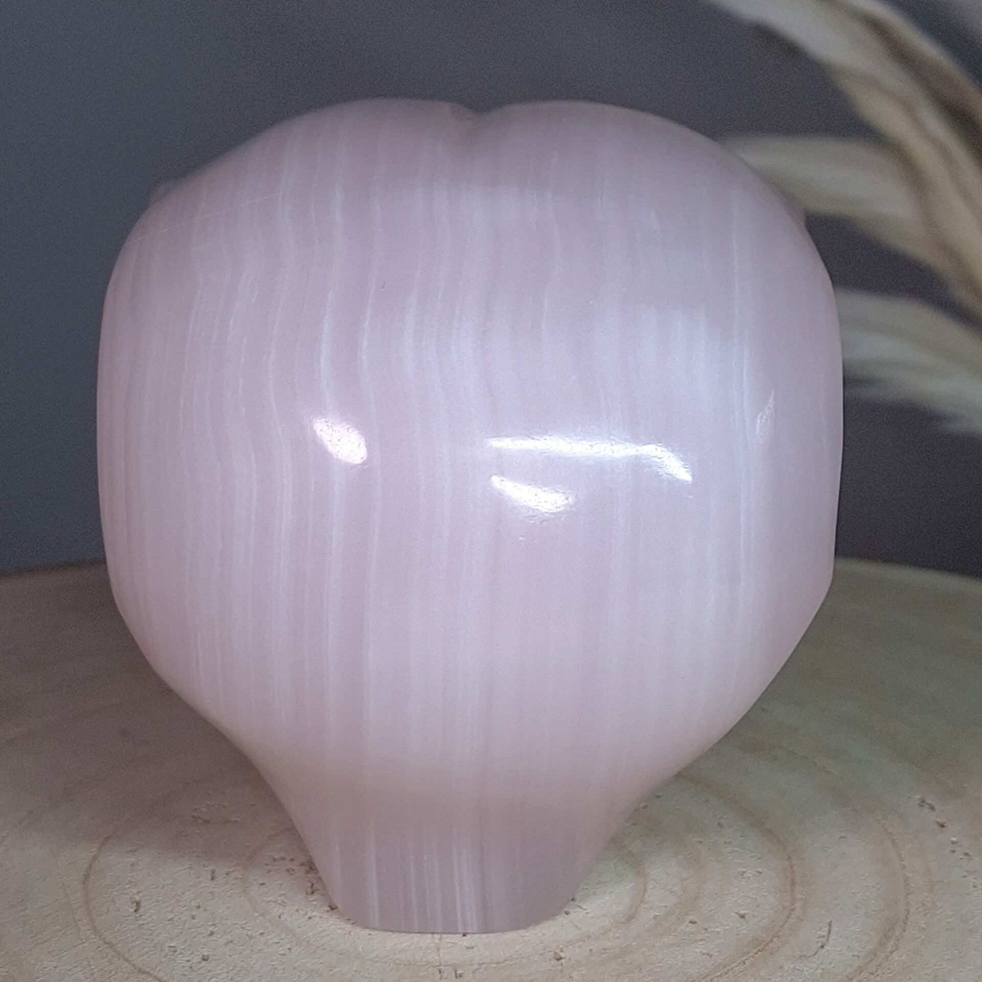 Mangano calciet is zeer lichtroze van kleur en heeft witte lijnen. Het heeft een kalmerende liefdevolle energie. Mangano Calciet is zeer geschikt voor iedereen, ook zeer geschikt voor praktijkruimtes en kinderkamers.