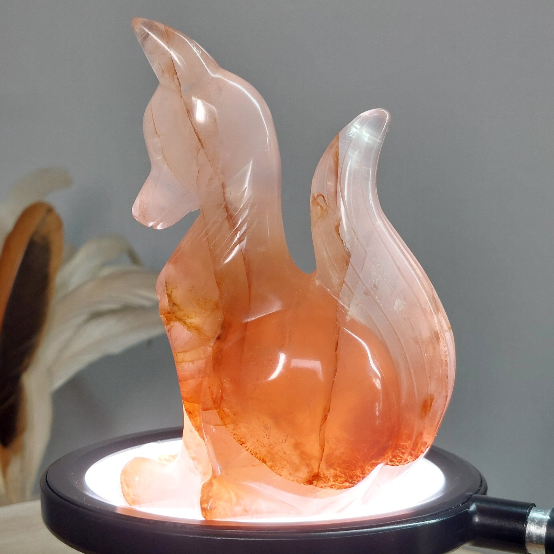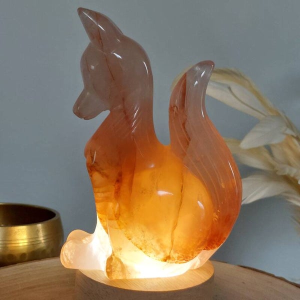 Hematietkwarts / Fire quartz prachtige vos. Incl usb lampje