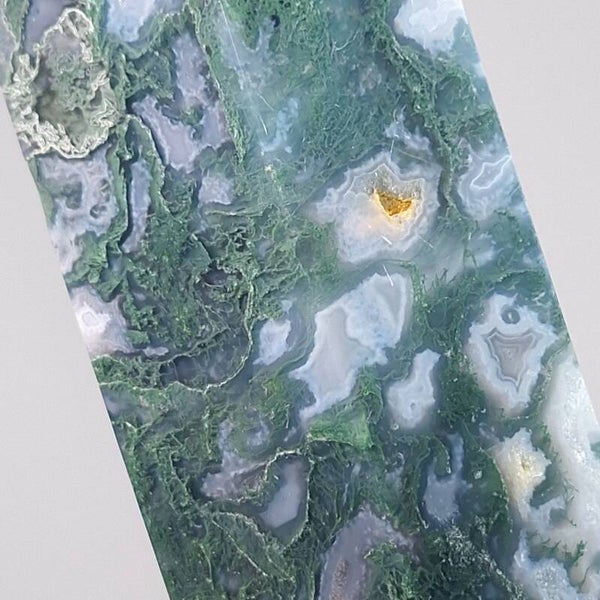 Mosagaat helpt je om zorgen los te laten en te ontspannen. Goed voor huid, haren en bevordert spijsvertering. Maakt actief en vitaal. Mos agaat geeft rust en helderheid, maakt bevalling makkelijker, positieve invloed op de ontwikkeling van de foetus, stimuleert wilskracht en werklust, zorgt voor meer uithoudingsvermogen, opent het hart voor universele liefde, geeft energie en helpt om beter te aarde. Mosagaat heeft een positieve werking op de weerstand, het immuunsysteem, hart en bloedvaten en de longen. De energieën zijn bescheiden maar heilzaam. Hij werkt stabiliserend en aardend. De energie van deze steen zorgt ervoor dat lichaam, geest en ziel naar hun natuurlijke evenwicht worden gebracht zodat je meer rust kunt ervaren op alle niveaus. Mos agaat helpt je te herstellen na ziekte en om weer tot jezelf te komen na een periode van emotionele onrust. Mos agaat werkt goed tegen angsten en stress. Helpt tegen straling. Mosagaat is heel goed voor mensen met schrik en angsten en fobieën of straatvrees, door het dragen krijg je meer eigenwaarde en gevoel van onaantastbaarheid, hij helpt je om overal weer de schoonheid van in te zien. osagaat helpt je bij gevoeligheid voor het weer en bij milieuvervuiling. Deze steen is zeer goed voor alle mensen die met planten en gewassen werken.Het is een steen voor een nieuw begin en helpt bij het opheffen van blokkades. Bij een scheiding, overlijden of intens verdriet geeft de mosagaat een steuntje in de rug, hij helpt je ook bij het afscheid nemen van het verleden en geeft rust in lichaam en geest.Mosagaat is een steen van rijkdom en trekt overvloed aan.Hij helpt ook mensen die erg in hun hoofd zitten bij hun gevoel te komen. De steen helpt om met andere mensen om te gaan en deze ruimte tot groei te geven. Geestelijk bevordert hij zelfexpressie en communicatie. Deze optimistische steen is zeer behulpzaam voor mensen die depressief zijn vanwege hun levensomstandigheden of door een onbalans in de hersenen, hij geeft dan inzicht in de achterlliggende oorzaken. Mosagaat is goed bij ongemakken aan de neus_ en keelholten, ook zorgt hij voor het beter oplossen van slijm, ontkrampt de maag, darmen en blaas. Ook goed voor de seksuele organen en maakt ze gelijktijdig actief. De steen gaat ontstekingen tegen, reinigt de bloedsomloop en versterkt het immuunsysteem. Goed voor het lymfesysteem en als elixer op de huid aangebracht behandelt Mosagaat schimmelinfecties en andere huidinfecties.
