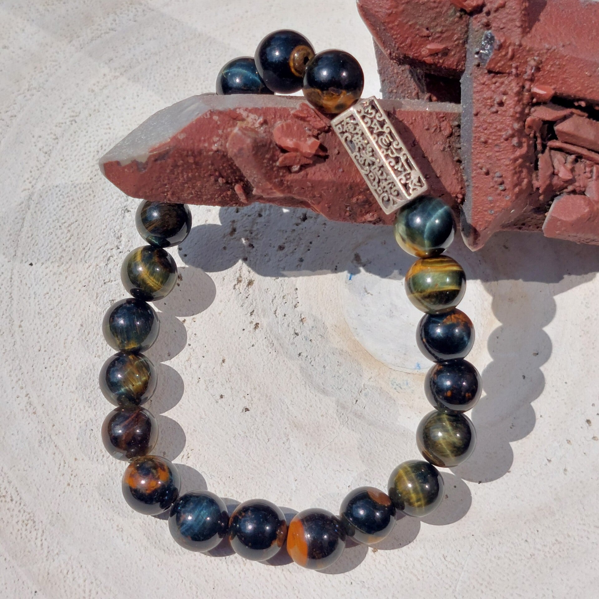 Tijgeroog met Valkenoog Armband 21x 8mm met zilveren 925 bead van 1,5cm