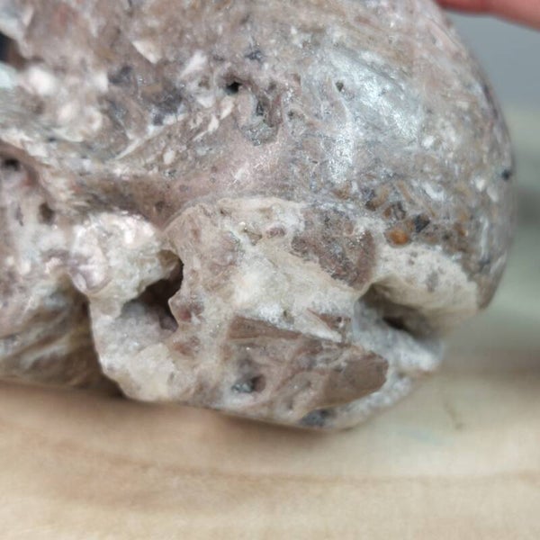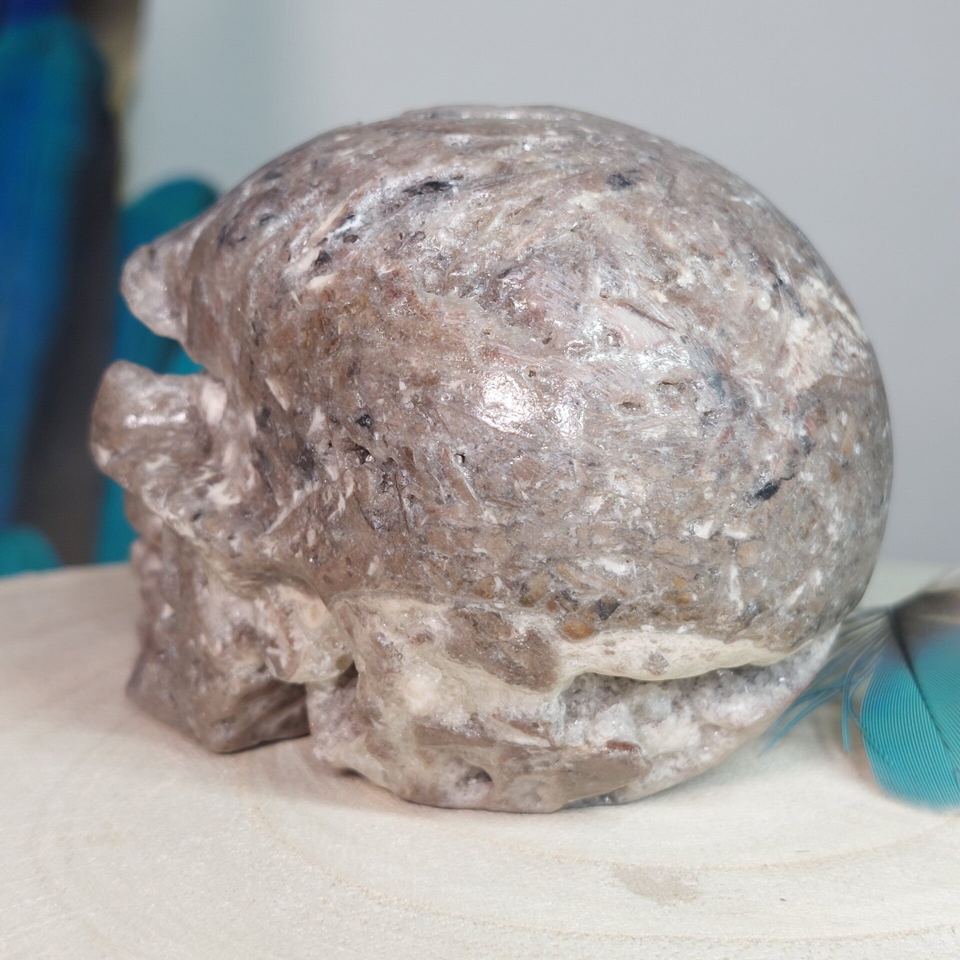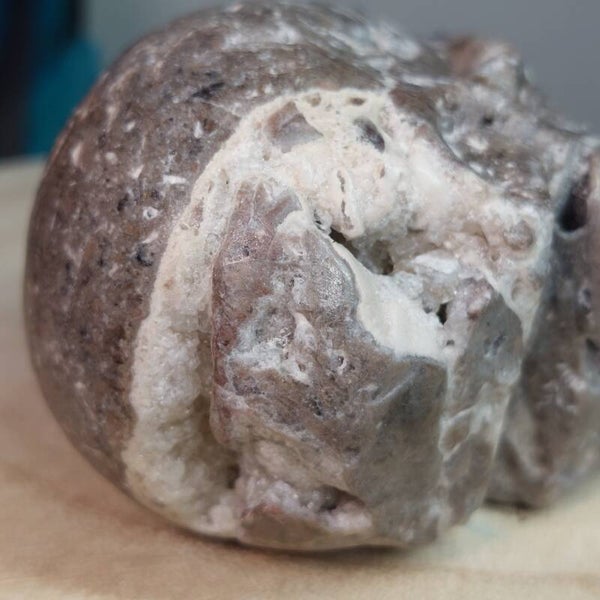 Chalcedoon skull uit Indonesië. Heeft ook mooie sprankelende kristalletjes