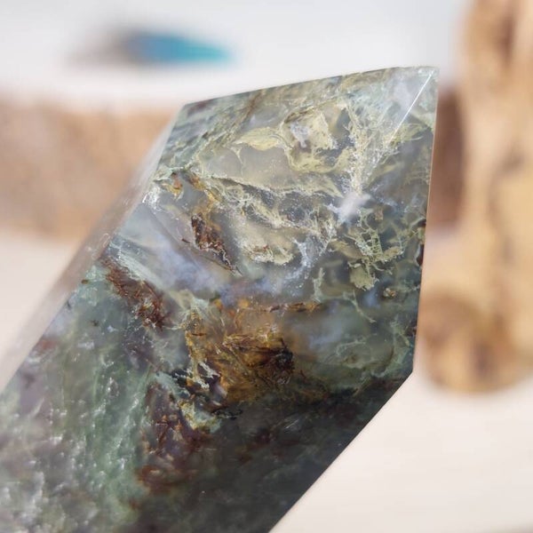 Mosagaat helpt je om zorgen los te laten en te ontspannen. Goed voor huid, haren en bevordert spijsvertering. Maakt actief en vitaal. Mos agaat geeft rust en helderheid, maakt bevalling makkelijker, positieve invloed op de ontwikkeling van de foetus, stimuleert wilskracht en werklust, zorgt voor meer uithoudingsvermogen, opent het hart voor universele liefde, geeft energie en helpt om beter te aarde. Mosagaat heeft een positieve werking op de weerstand, het immuunsysteem, hart en bloedvaten en de longen. De energieën zijn bescheiden maar heilzaam. Hij werkt stabiliserend en aardend. De energie van deze steen zorgt ervoor dat lichaam, geest en ziel naar hun natuurlijke evenwicht worden gebracht zodat je meer rust kunt ervaren op alle niveaus. Mos agaat helpt je te herstellen na ziekte en om weer tot jezelf te komen na een periode van emotionele onrust. Mos agaat werkt goed tegen angsten en stress. Helpt tegen straling. Mosagaat is heel goed voor mensen met schrik en angsten en fobieën of straatvrees, door het dragen krijg je meer eigenwaarde en gevoel van onaantastbaarheid, hij helpt je om overal weer de schoonheid van in te zien. osagaat helpt je bij gevoeligheid voor het weer en bij milieuvervuiling. Deze steen is zeer goed voor alle mensen die met planten en gewassen werken.Het is een steen voor een nieuw begin en helpt bij het opheffen van blokkades. Bij een scheiding, overlijden of intens verdriet geeft de mosagaat een steuntje in de rug, hij helpt je ook bij het afscheid nemen van het verleden en geeft rust in lichaam en geest.Mosagaat is een steen van rijkdom en trekt overvloed aan.Hij helpt ook mensen die erg in hun hoofd zitten bij hun gevoel te komen. De steen helpt om met andere mensen om te gaan en deze ruimte tot groei te geven. Geestelijk bevordert hij zelfexpressie en communicatie. Deze optimistische steen is zeer behulpzaam voor mensen die depressief zijn vanwege hun levensomstandigheden of door een onbalans in de hersenen, hij geeft dan inzicht in de achterlliggende oorzaken. Mosagaat is goed bij ongemakken aan de neus_ en keelholten, ook zorgt hij voor het beter oplossen van slijm, ontkrampt de maag, darmen en blaas. Ook goed voor de seksuele organen en maakt ze gelijktijdig actief. De steen gaat ontstekingen tegen, reinigt de bloedsomloop en versterkt het immuunsysteem. Goed voor het lymfesysteem en als elixer op de huid aangebracht behandelt Mosagaat schimmelinfecties en andere huidinfecties.