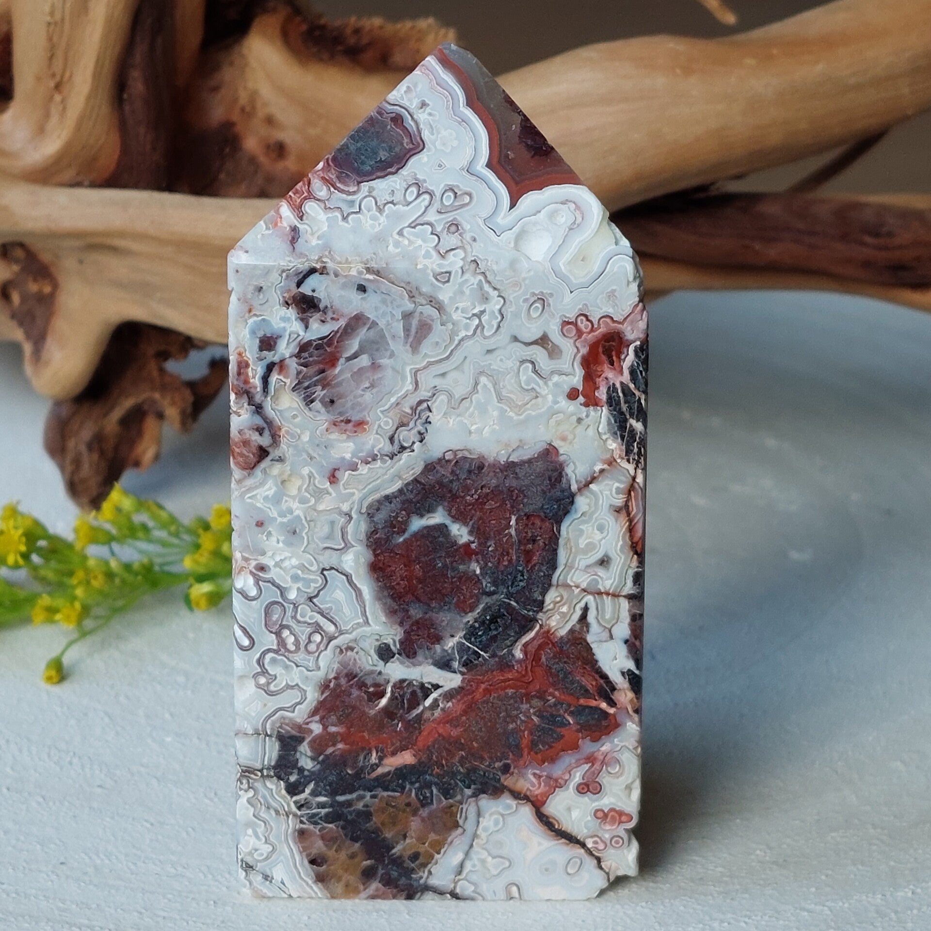Mexicaanse cracy lace Agaat toren met mooie kleuren en patronen.
