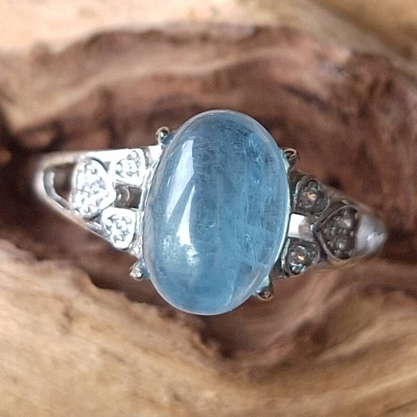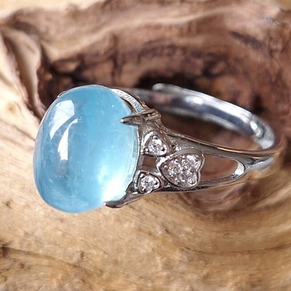 Prachtige verstelbare Sterling zilveren ring met mooie Aquamarijn steen.