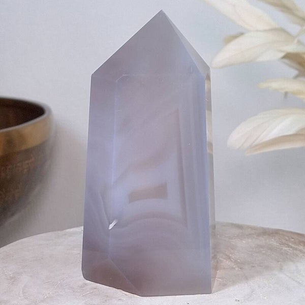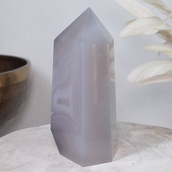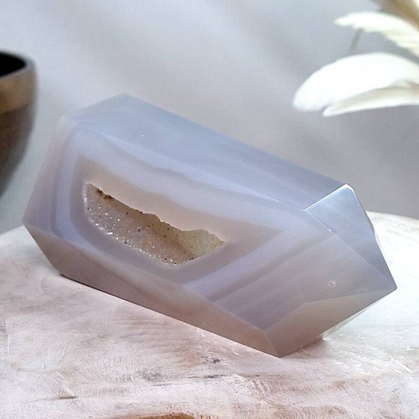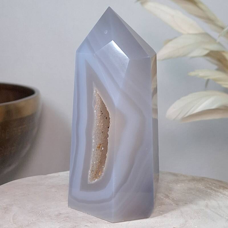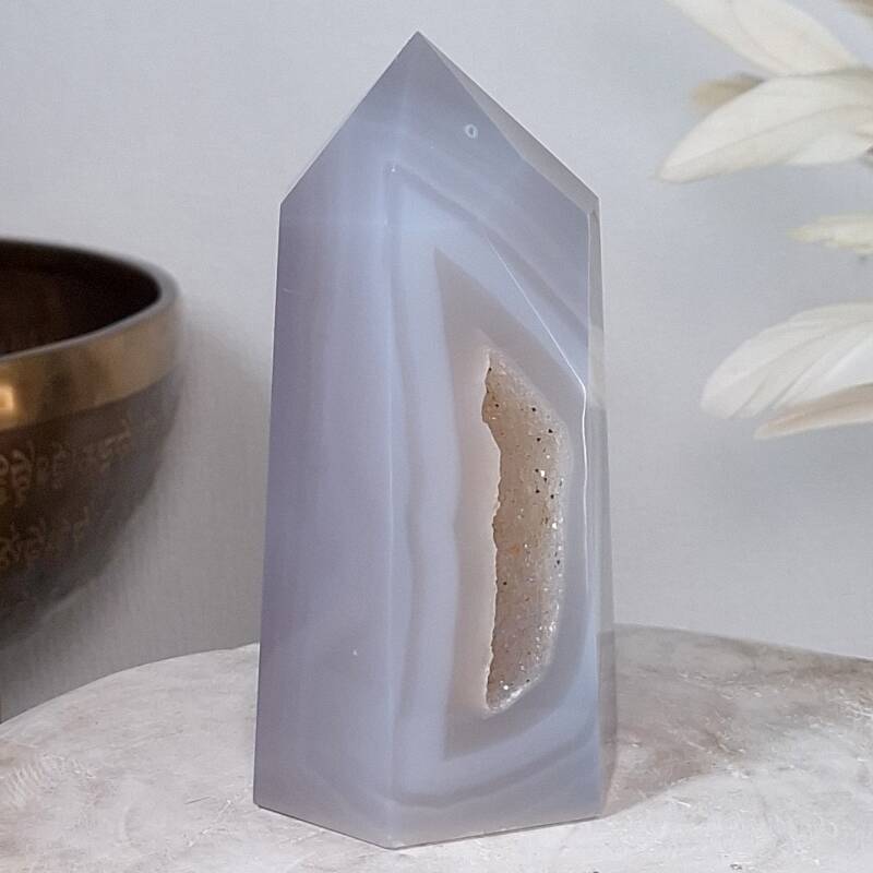 Agaat. Unieke, prachtige druzy Agaat toren met prachtige lijnen van Chalcedoon