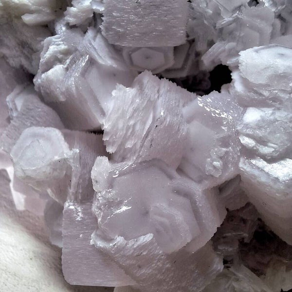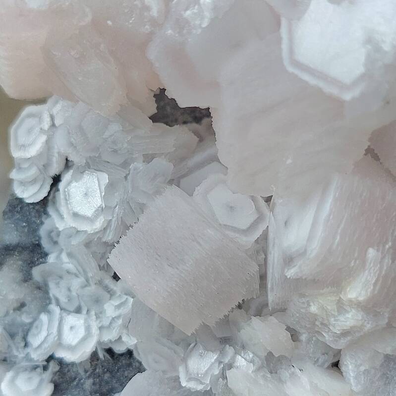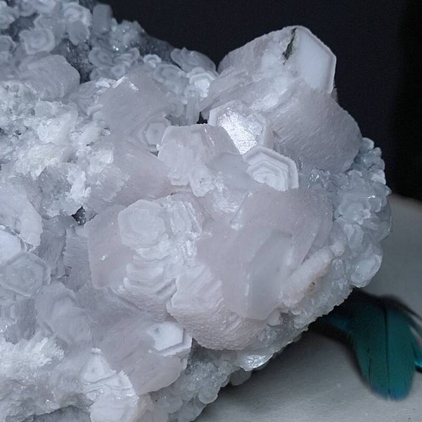 Fujian roze munt 1000 lagen Calciet met Fluoriet en sprankelende "suiker" kwarts. Uniek en zeldzame cluster uit Longyan Fujian China. Sterk fluoriserend. 720 gram