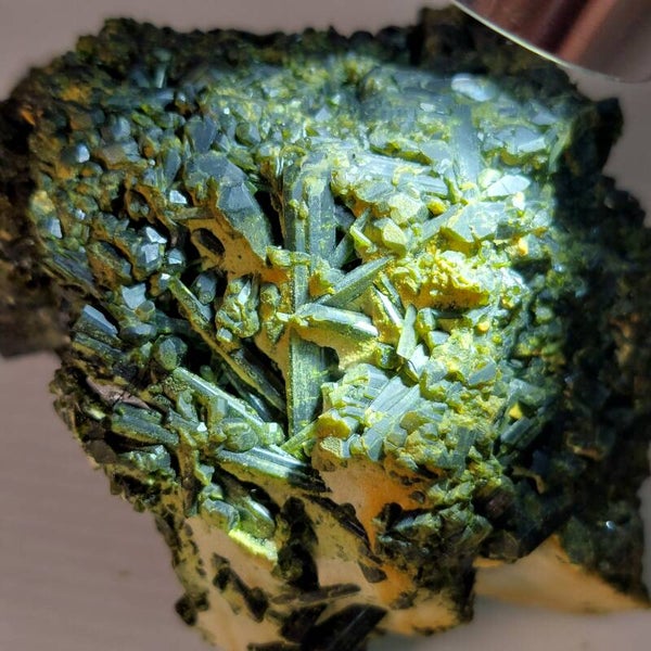 Prachtige Epidoot cluster waarbij de kristalgroei heel mooi zichtbaar is. Deze schat van Moeder Aarde is afkomstig uit Kharan district, Baluchistan Pakistan 7,7x5,5cm 205 gram