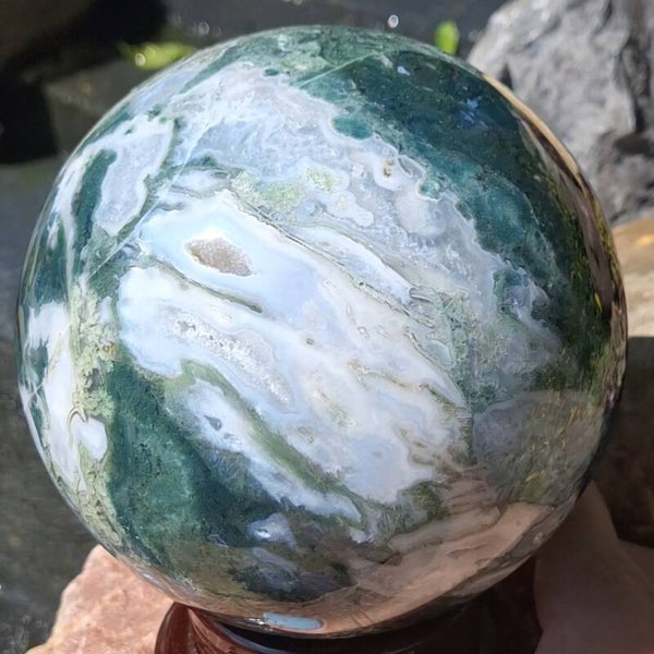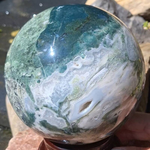 Mosagaat XL bol. Magisch mooi en groot exemplaar met prachtige kleuren en patronen. 3,4 kilo