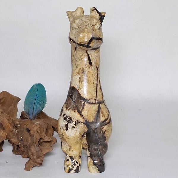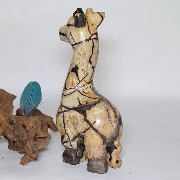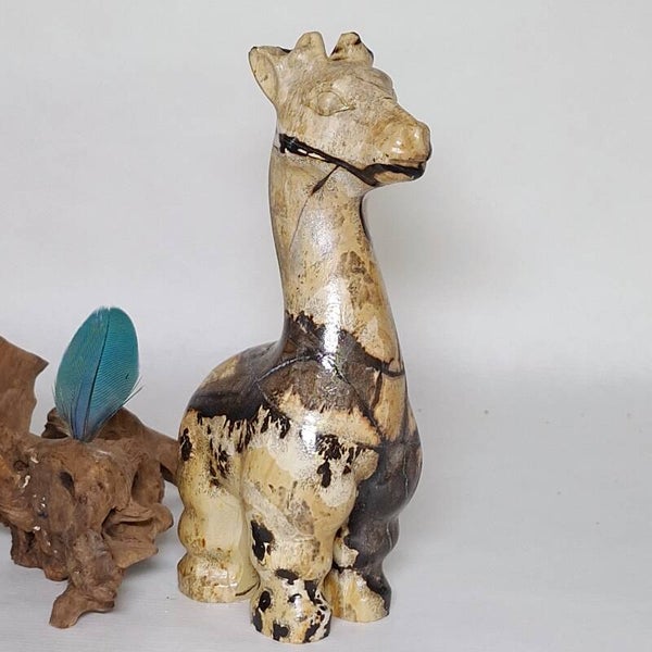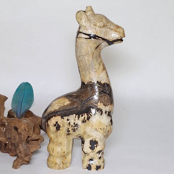 Giraffe gemaakt van Dendriet Jaspis. Zeer mooi groot beeld met prachtige patronen van 14,6 cm