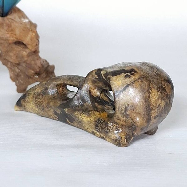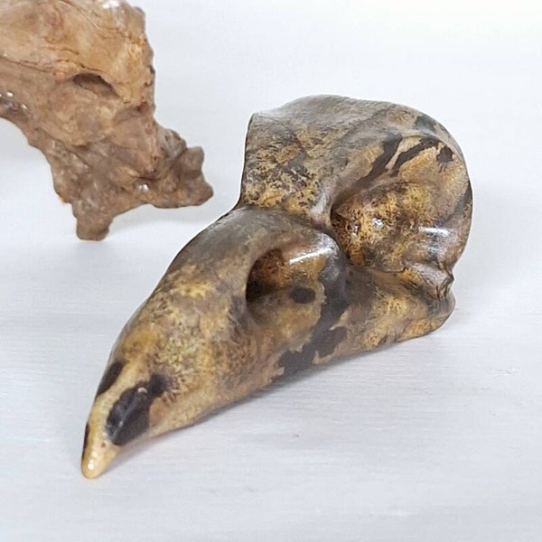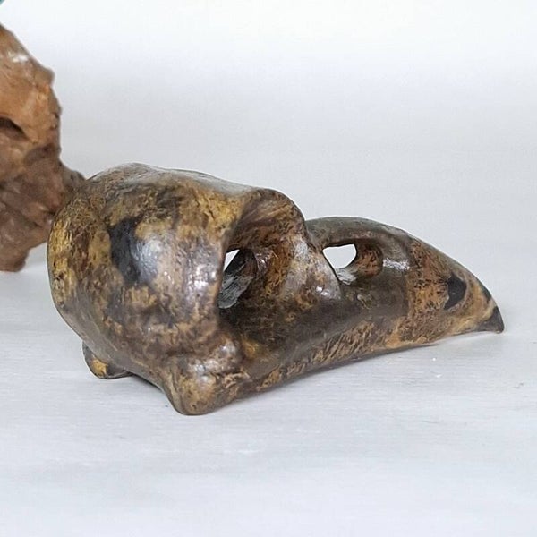 Raven skull gemaakt van Dendriet Jaspis. Mooie schedel van een Raaf. 8cm. Je kunt deze raven schedel ook als hanger gebruiken door een touwtje of ketting door de ogen te doen.