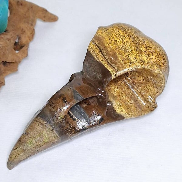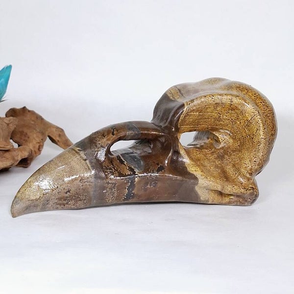 Jaspis Prachtige Raven Skull van Picture Jaspis, Dendriet Jaspis Raaf