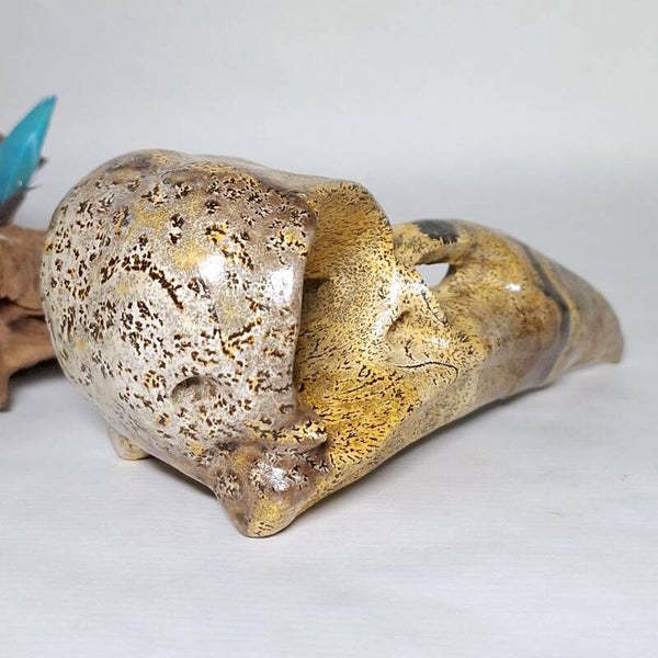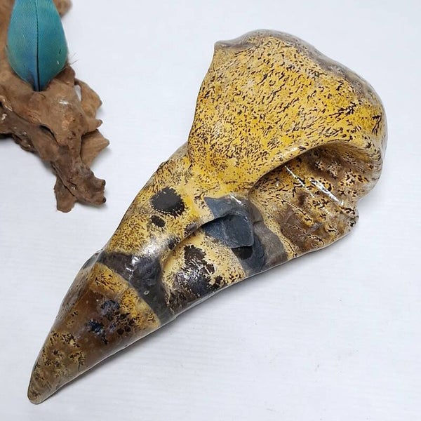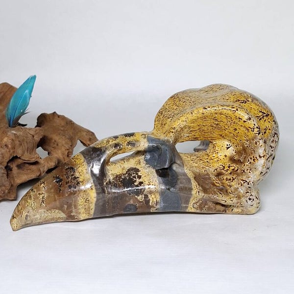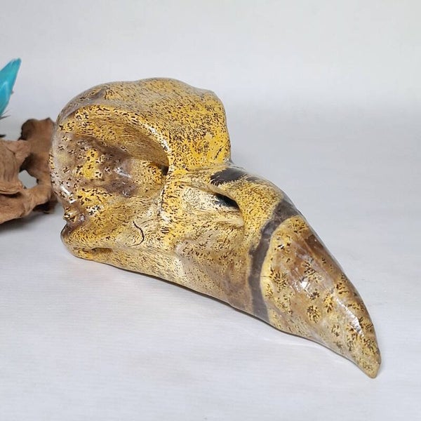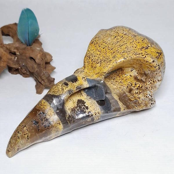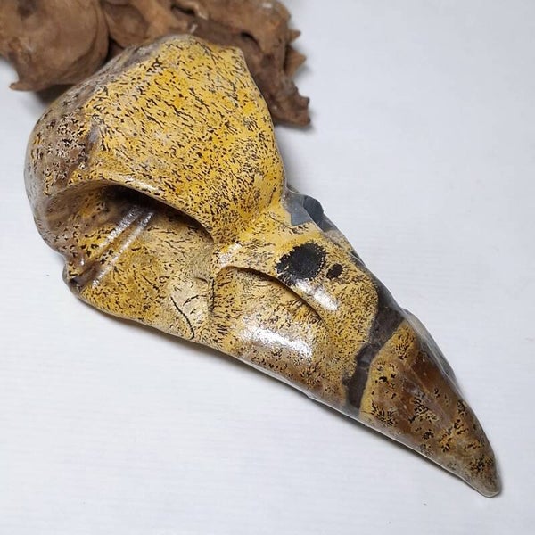 Raven Skull gemaakt van Landschaps, Dendriet Jaspis. Zeer mooie grote schedel van een Raaf met prachtige patronen. 15,5 cm