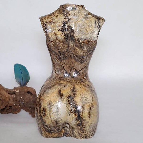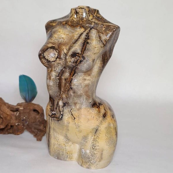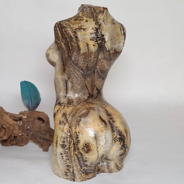 Het lijkt wel alsof een kunstenaar met de kwast is bezig geweest, uiteraard is de tekening puur natuur, heel mooi en bijzonder. Prachtig als aanvulling op het interieur voor thuis, praktijk en salon. Deze prachtige vrouwen torso heeft een zeer aardende energie en zal de ruimte voorzien van een enorme dosis positieve energie. JIJ mag er ZIJN ♡
