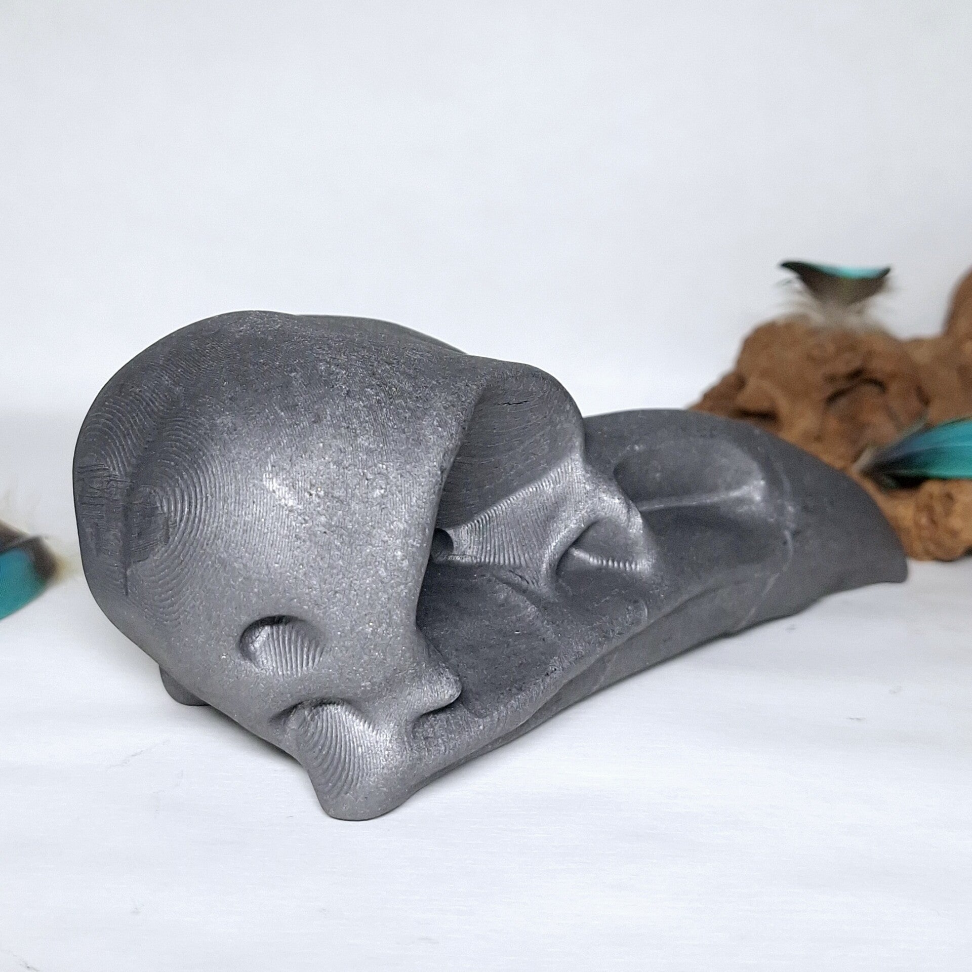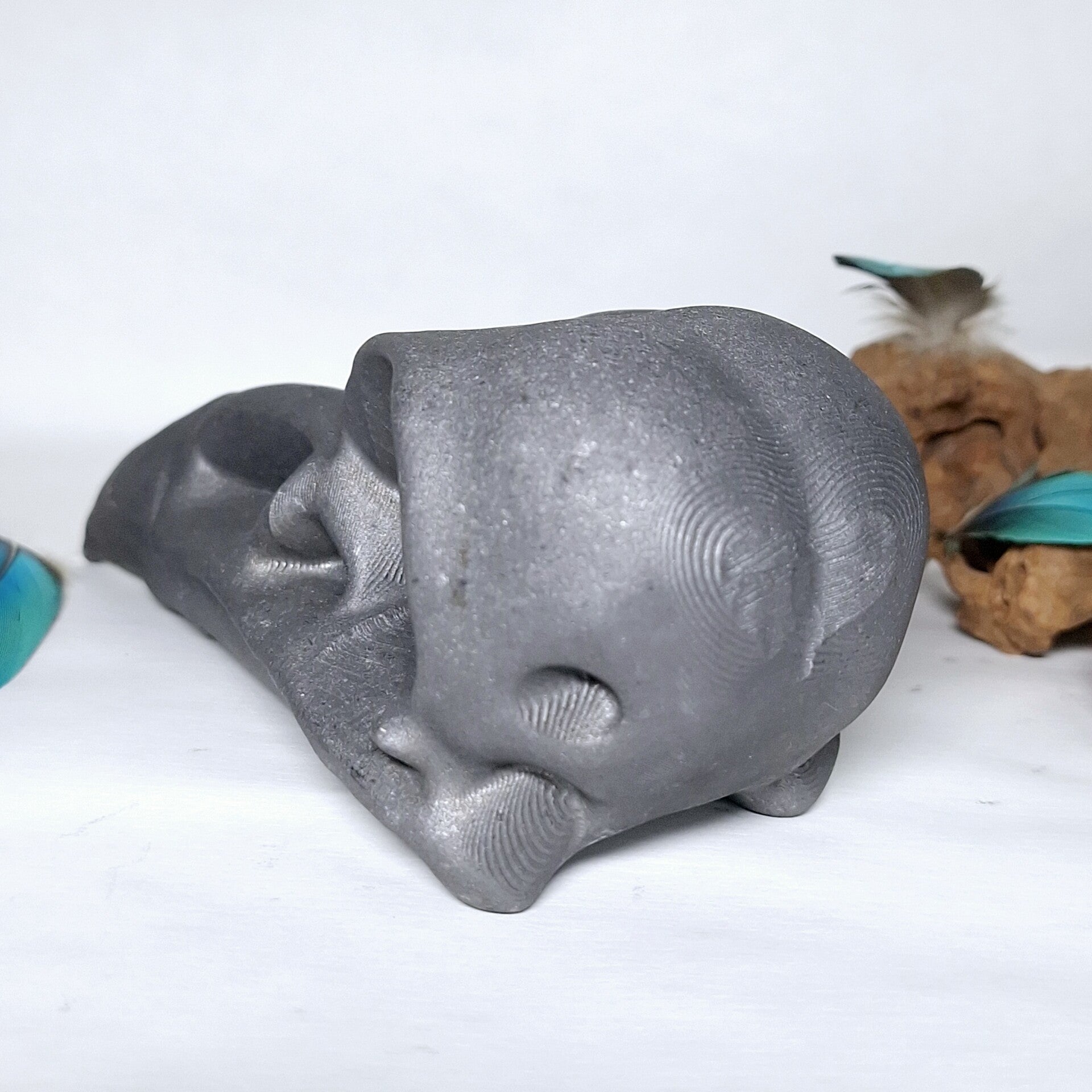 Deze prachtige Raven zijn gemaakt van geperste Shungiet en daardoor gelukkig voordelig geprijst. Het gaat natuurlijk wel om echte Shungiet die dezelfde bovengenoemde kenmerken bevat als de niet geperste vorm. Leuk weetje: met Shungiet kun je schrijven en scrollen op je telefoon. Als je met de bovenkant van de snavel (niet met de punt) over je telefoon schuift of tikt dan werkt deze ook daadwerkelijk als touchscreen pen en schrijven of tekenen op papier kun je ook met deze bijzondere skull. Bekijk hier ook de video van.