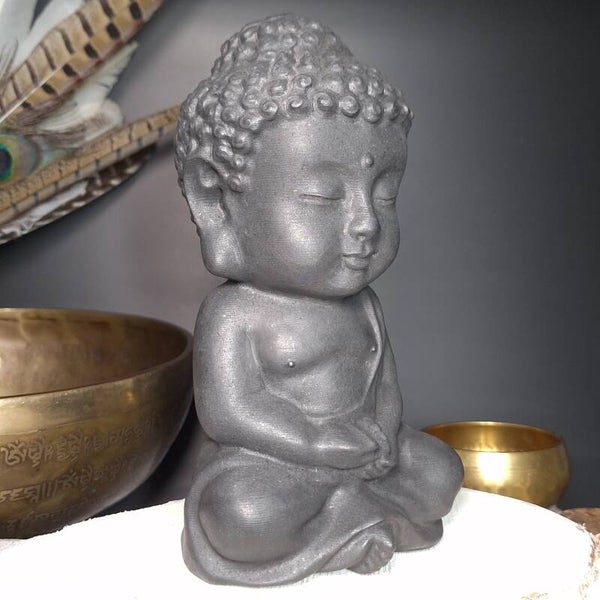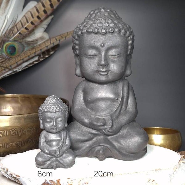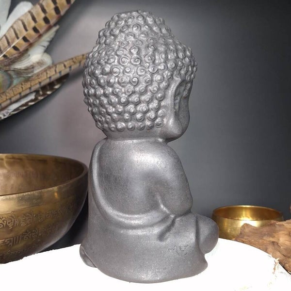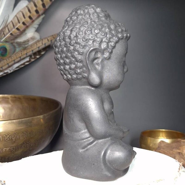 Shungiet. Prachtige 20cm XL Boeddha van Shungit uit Rusland