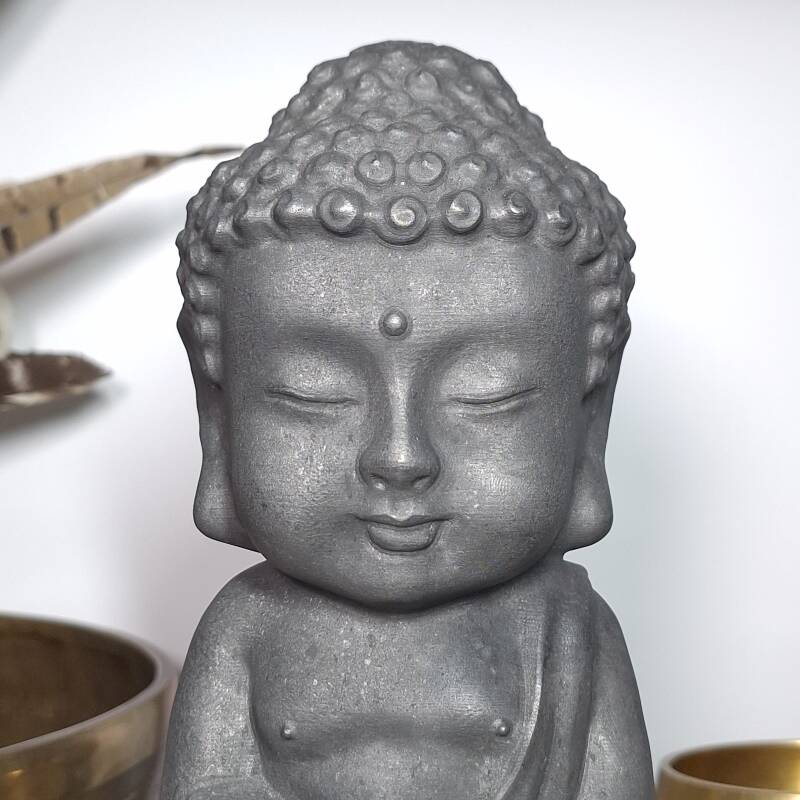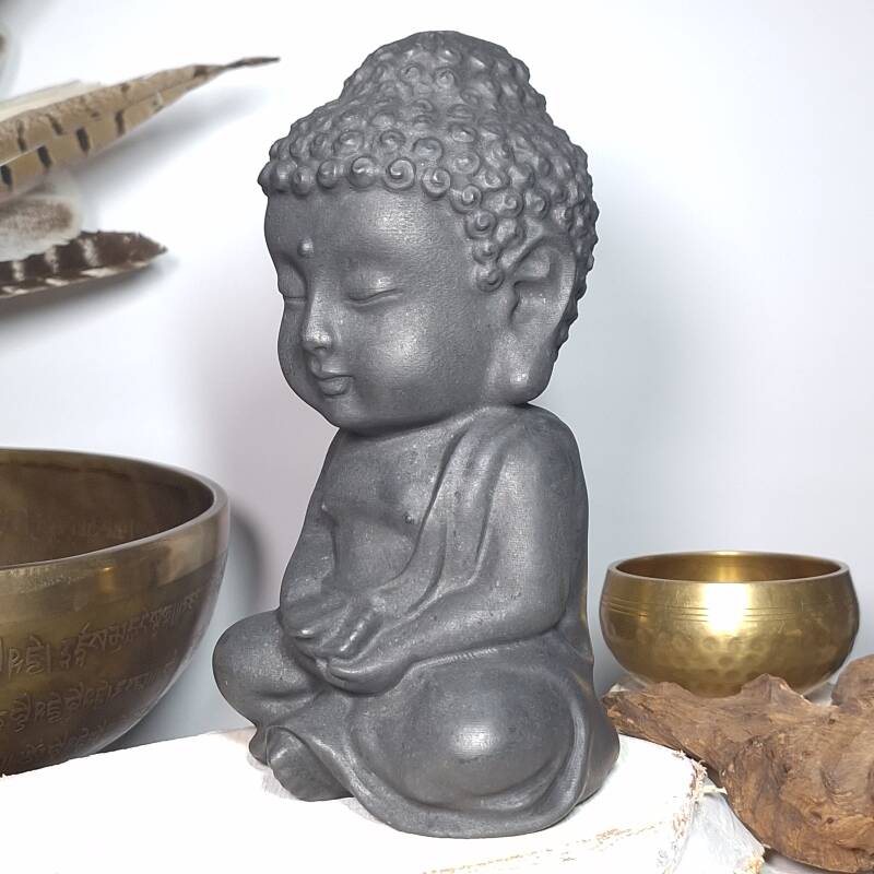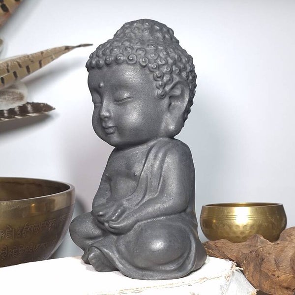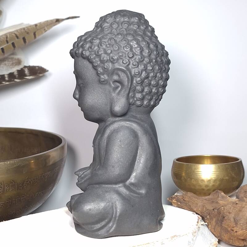 Shungiet. Prachtige 20cm XL Boeddha van Shungit uit Rusland