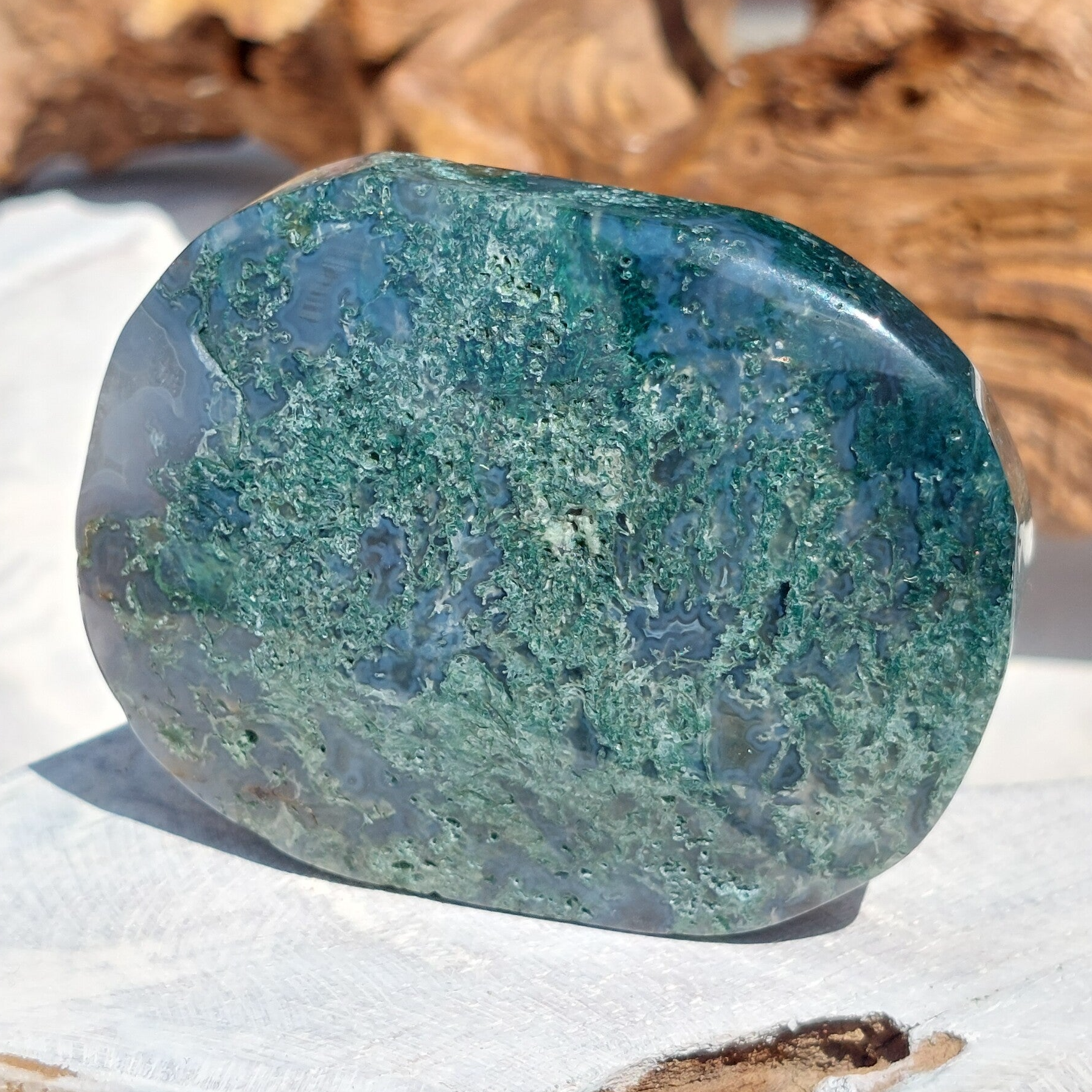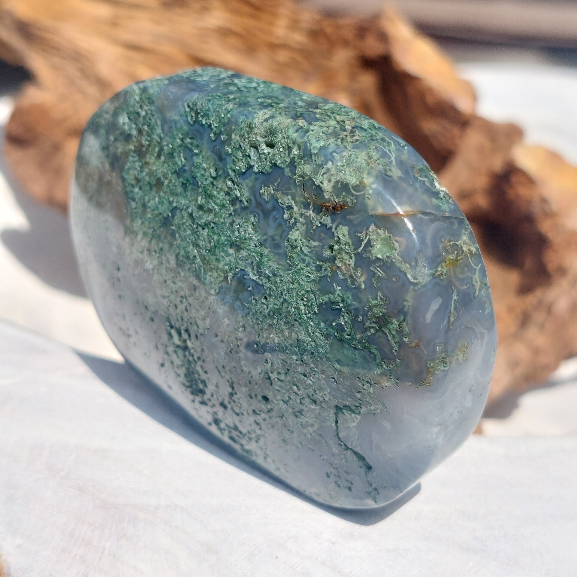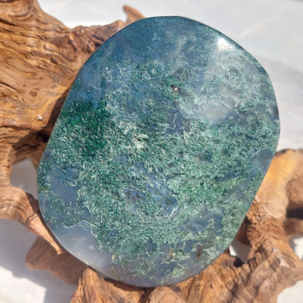 Mosagaat is een steen voor iedereen. De energieën zijn bescheiden maar heilzaam. Hij werkt stabiliserend en aardend. De energie van deze steen zorgt ervoor dat lichaam, geest en ziel naar hun natuurlijke evenwicht worden gebracht zodat je meer rust kunt ervaren op alle niveaus. Mos agaat helpt je te herstellen na ziekte en om weer tot jezelf te komen na een periode van emotionele onrust. Mos agaat werkt goed tegen angsten en stress. Helpt tegen straling. Mos agaat helpt je om zorgen los te laten en te ontspannen. Goed voor huid, haren en bevordert spijsvertering. Maakt actief en vitaal. Mos agaat geeft rust en helderheid, maakt bevalling makkelijker, positieve invloed op de ontwikkeling van de foetus, stimuleert wilskracht en werklust, zorgt voor meer uithoudingsvermogen, opent het hart voor universele liefde, geeft energie en helpt om beter te aarde. Mos agaat heeft een positieve werking op de weerstand, het immuunsysteem, hart en bloedvaten en de longen