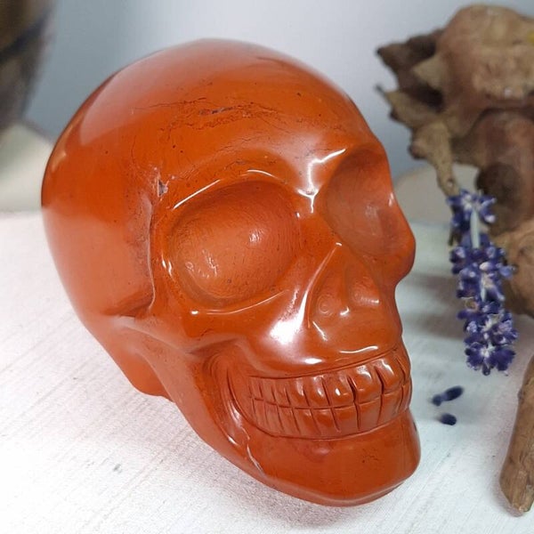 Rode Jaspis schedel. Prachtige edelstenen Skull