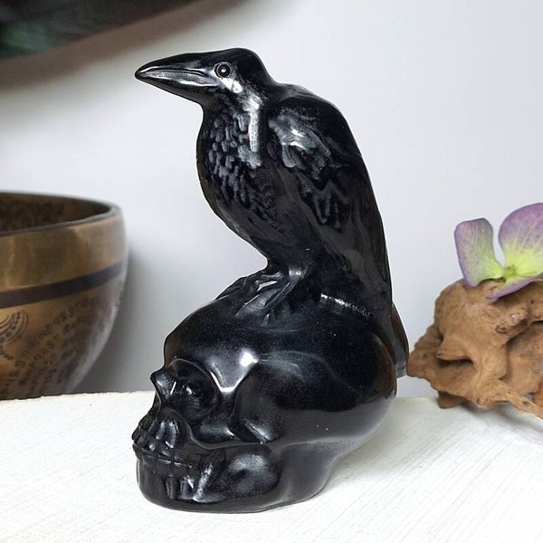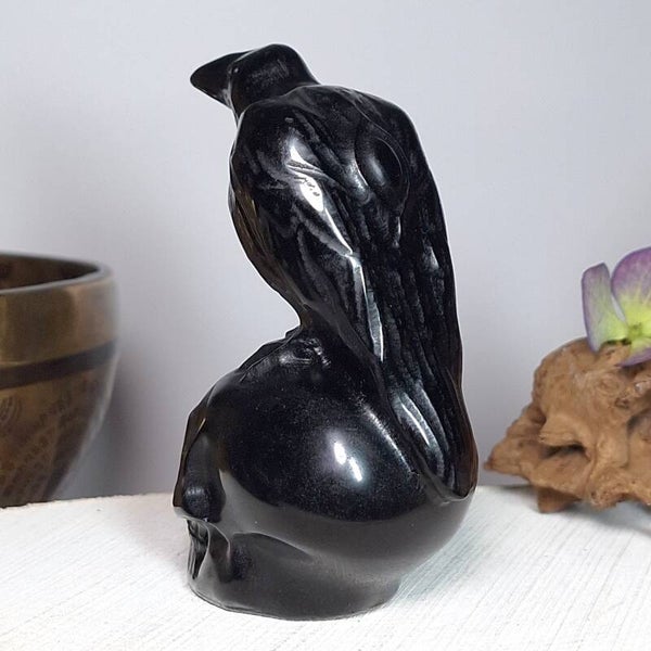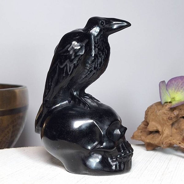 De raaf is al eeuwen lang een symbool van wijsheid, inzicht, heling en affectie onder andere. Ze staan in nauw contact met zielen die niet meer fysiek aanwezig zijn op aarde. Door het mediteren met een ravenschedel kun je bijvoorbeeld in contact komen met jouw voorouders en hierdoor tot nieuwe inzichten en wijsheden komen. Raven schedels transformeren donkere magie, entiteiten en negativiteit in positieve energie. Je gaat je weer zo licht en open voelen. Raven schedels maken het mogelijk om tegelijkertijd in de Bovenwereld en de Aardewereld te functioneren als een engelenmens. Hoger overzicht, inzicht, wijsheid en hoger energiewerk worden in je geactiveerd en de Raven schedel waardoor je temidden van ego, macht, dualiteit en donkere magie toch in het Licht kunt leven.