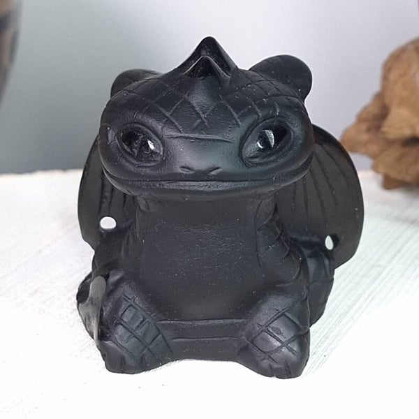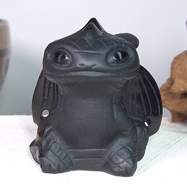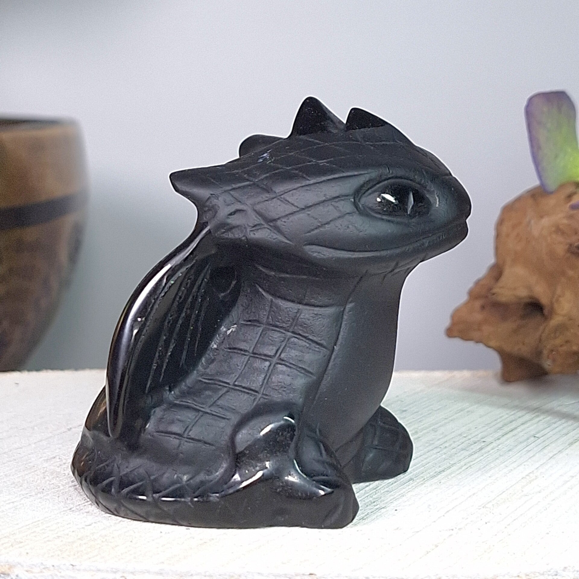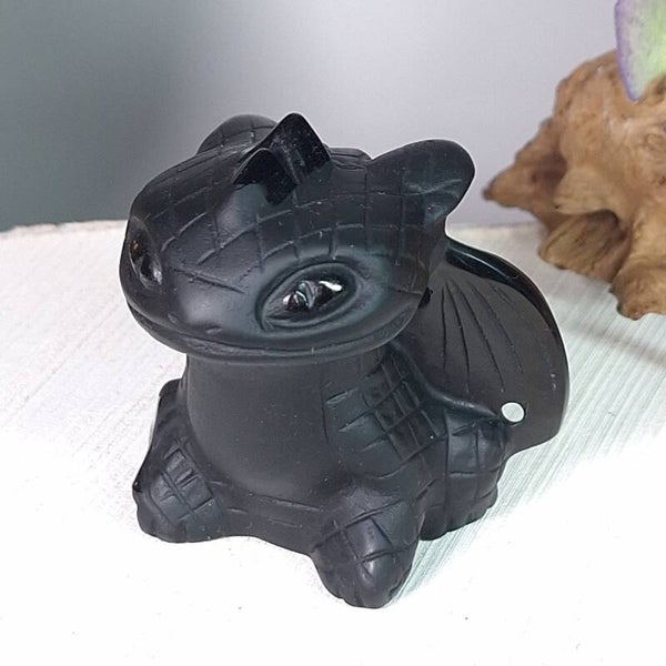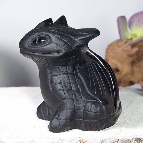 Obsidiaan Toothless van 7 cm. Echt een schatje, zeer mooi handgeslepen beeldje. .