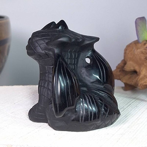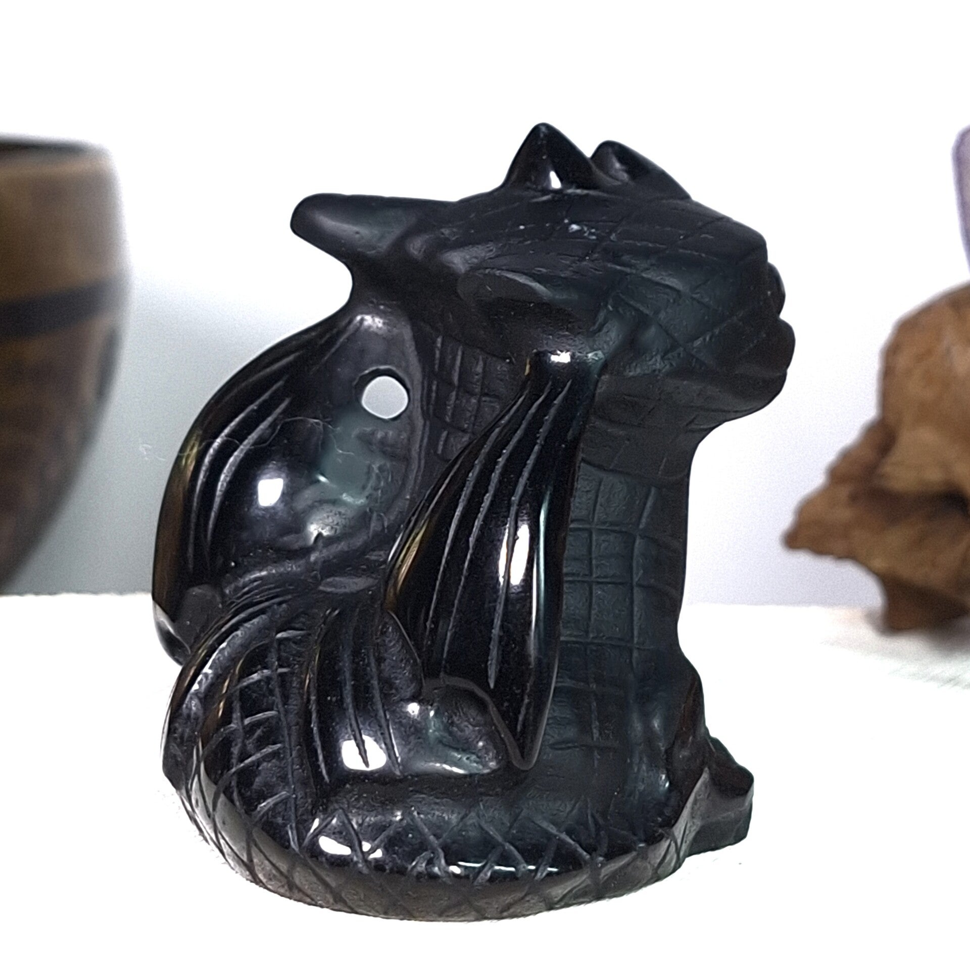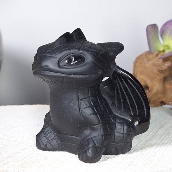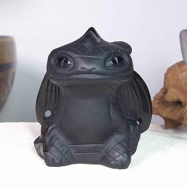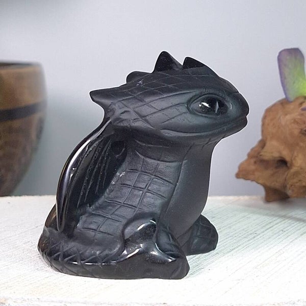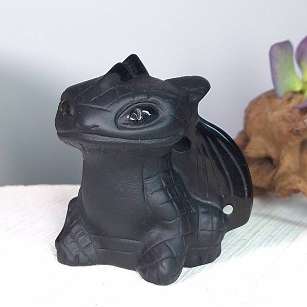 Prachtig toothless draakje van zwarte Obsidiaan 7cm