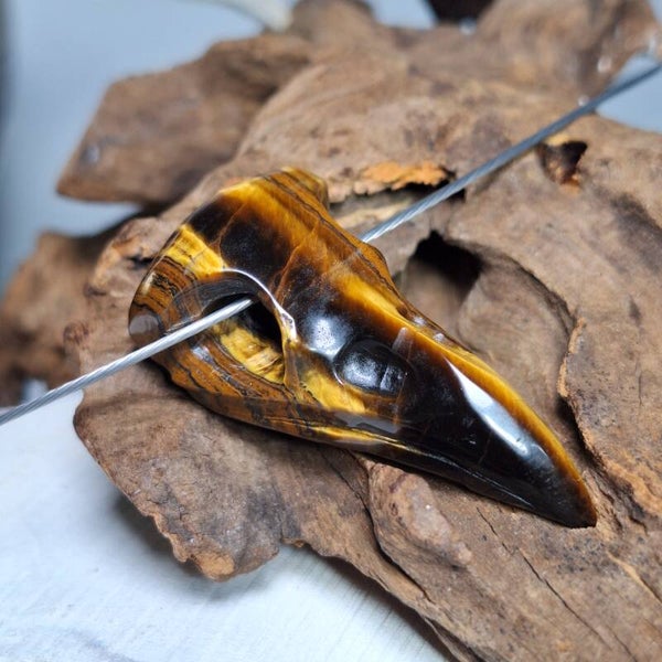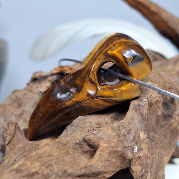 Tijgeroog bird skull hanger. Prachtige kwaliteit schedel van de raaf, kraai, roofvogel o.a
