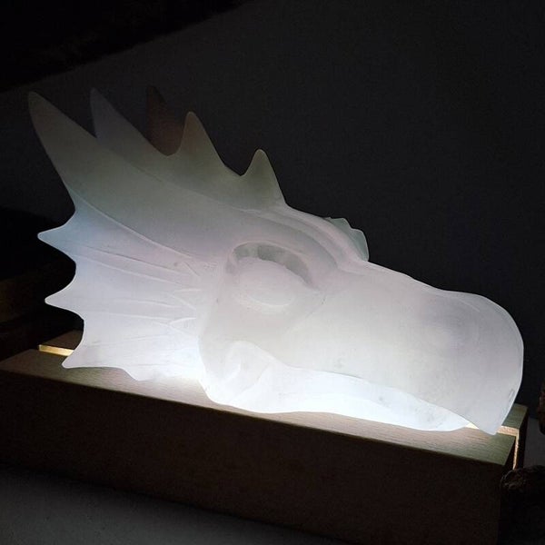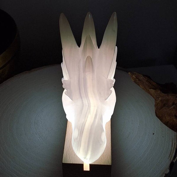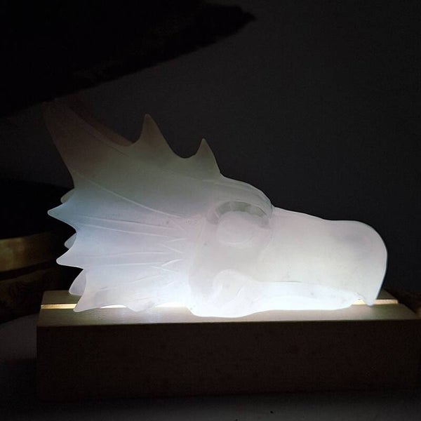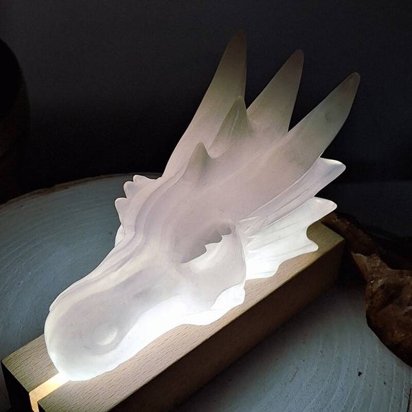 De Draak kan ook op een lampje worden gezet xoals op de foto te zien is waardoor er wat licht doorheen schijnt, ook dit geeft een prachtig effect. Een schat van Moeder Aarde met enorm veel mogelijkheden♡