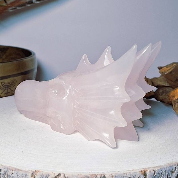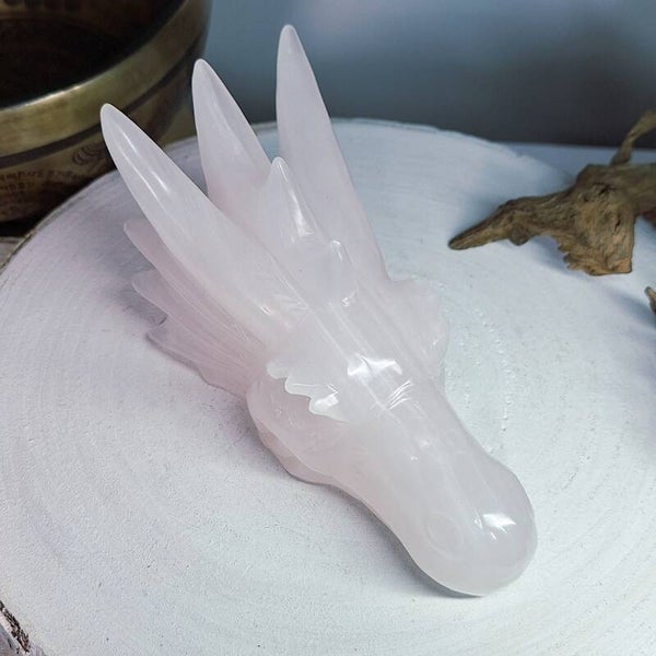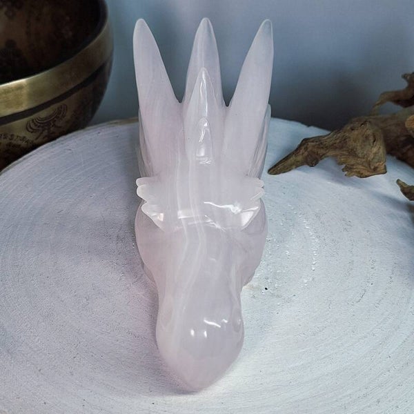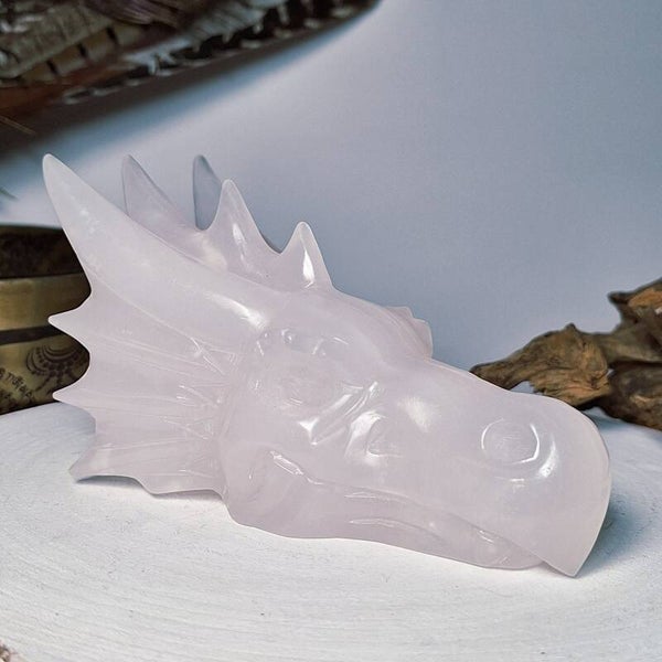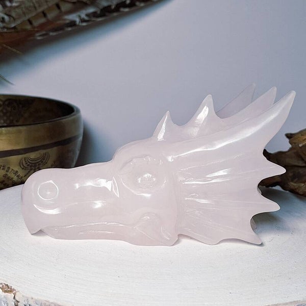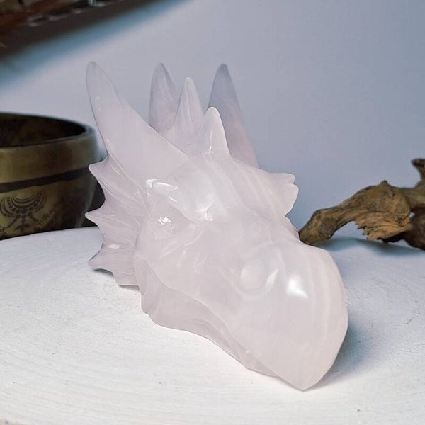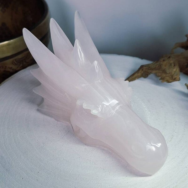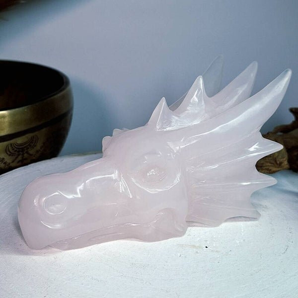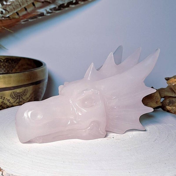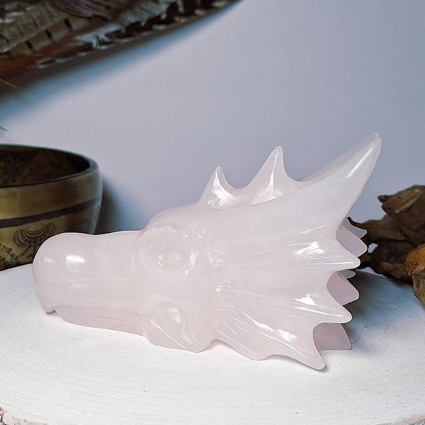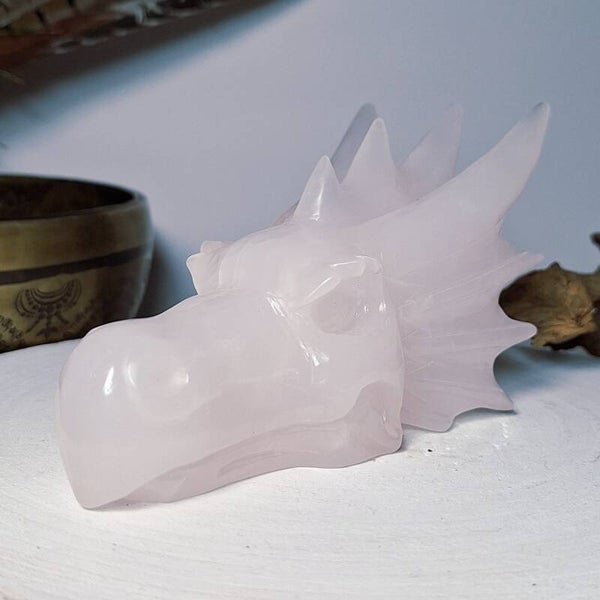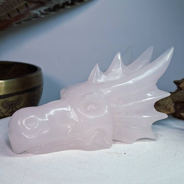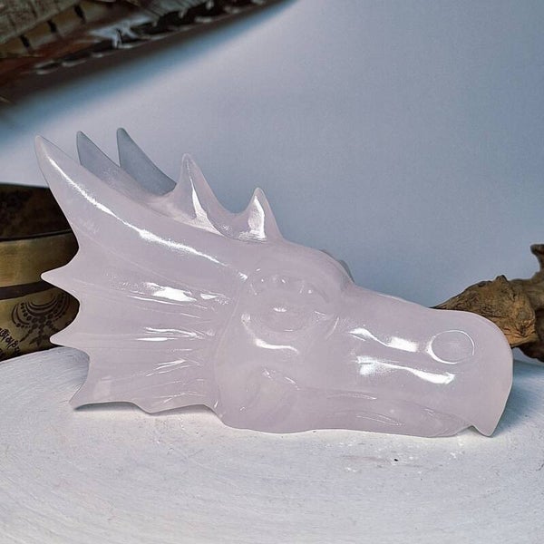 Drakenschedels maken gebruik van een andere frequentie dan mensenschedels (human skulls). De energie is krachtiger, maakt gebruik van Moeder Aarde en haar oerenergie. Er ligt een enorme wijsheid opgesloten in de kristallen drakenschedels. Drakenenergie is een transformerende, harmonieuze energie. Ze breekt op een liefdevolle, maar doeltreffende manier open wat vast zit en maakt het hart weer ontvankelijk om te kunnen ontvangen. Drakenenergie is als de energie uit de Bron en is voor iedereen. De ontvanger moet er echter wel klaar voor zijn. Er aan toe zijn om alles onder ogen te zien. De drakenenergie versterkt diepe emoties en healt tot in het diepste niveau. De draak is verbonden met de vier elementen: Vuur, Aarde, Lucht en Water, die samen met het vijfde element van Ether (Akash) de levenskracht versterken. Draken werken met intense energie. De hoeder (eigenaar) van de schedel moet daarom dus bereid zijn door zijn of haar eigen emoties te lopen. Als wilt leven vanuit het hart dan is een dragenschedel misschien wel iets voor jou. Draken zijn er in veel verschillende vormen en vele kleuren. De draak heeft altijd de energie vastgehouden, die wij als mensheid hadden verloren. Nu de Aarde en mensheid in een hogere frequentie terechtgekomen zijn, vinden er grote veranderingen plaats op het mentale, emotionele, fysieke en spirituele gebied. Hierdoor is de energie van de draak weer voor ons beschikbaar. Draken raken de ziel op het diepste niveau, waardoor de eigen ik kan groeien en zich ontwikkelen. Drakenenergie is in dat proces een enorme steun. Ze brandt schoon wat gezuiverd mag worden en wakkert het vuur aan waar het gedoofd is.