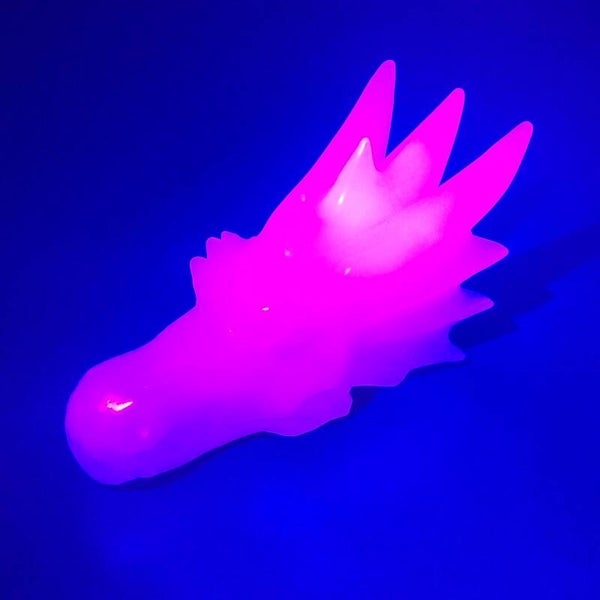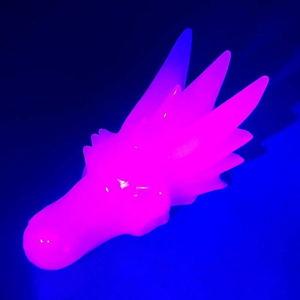 Tijdelijk wordt deze prachtige Draak geleverd met 395nm UV zaklampje. Je kunt dan meteen genieten van het mooie natuurlijke fluoriserende effect als het lampje op de Draken hoofd schijnt, doe dit in het schemer of donker om het mooiste effect te ervaren. 620 gram en 15cm.