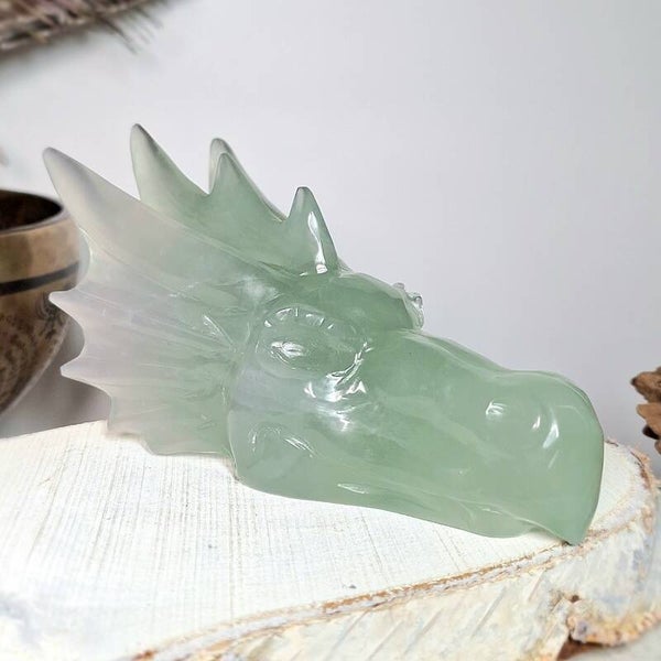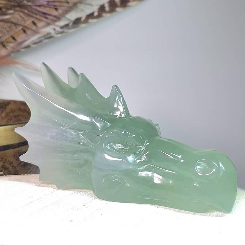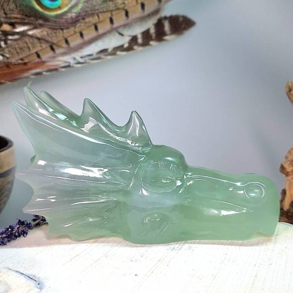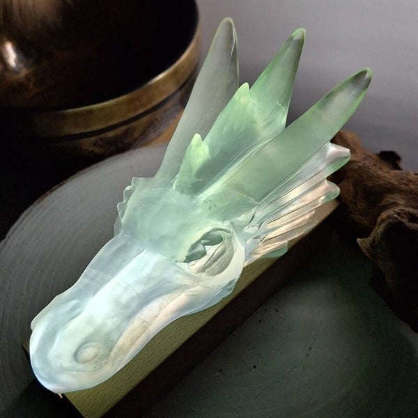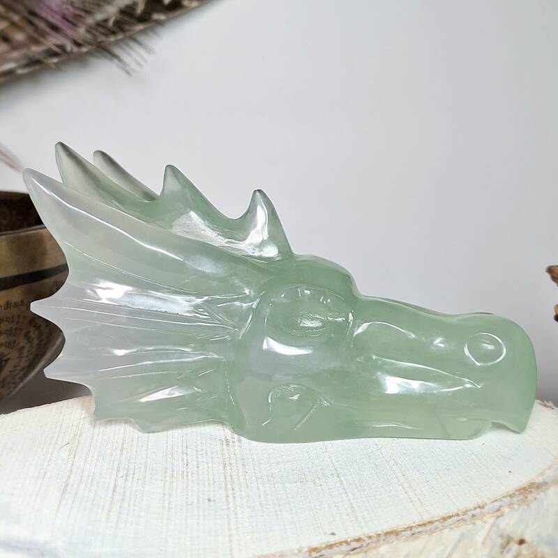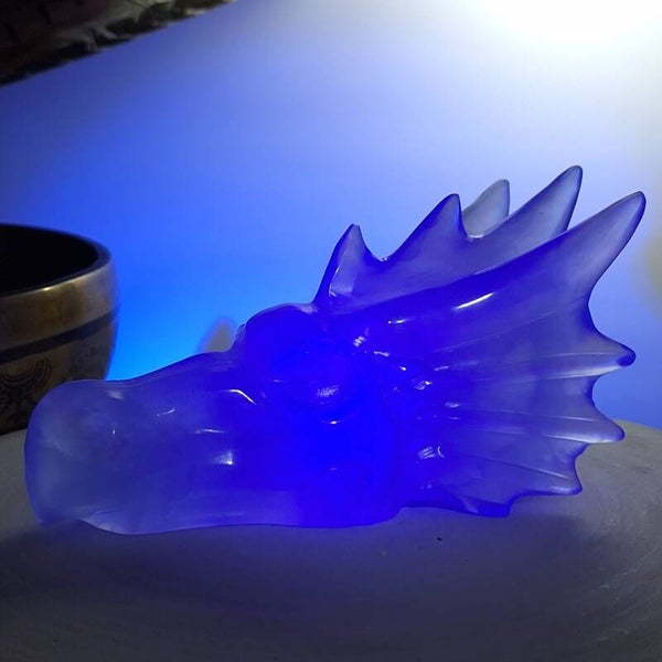 Drakenschedels maken gebruik van een andere frequentie dan mensenschedels (human skulls). De energie is krachtiger, maakt gebruik van Moeder Aarde en haar oerenergie. Er ligt een enorme wijsheid opgesloten in de kristallen drakenschedels. Drakenenergie is een transformerende, harmonieuze energie. Ze breekt op een liefdevolle, maar doeltreffende manier open wat vast zit en maakt het hart weer ontvankelijk om te kunnen ontvangen. Drakenenergie is als de energie uit de Bron en is voor iedereen. De ontvanger moet er echter wel klaar voor zijn. Er aan toe zijn om alles onder ogen te zien. De drakenenergie versterkt diepe emoties en healt tot in het diepste niveau. De draak is verbonden met de vier elementen: Vuur, Aarde, Lucht en Water, die samen met het vijfde element van Ether (Akash) de levenskracht versterken. Draken werken met intense energie. De hoeder (eigenaar) van de schedel moet daarom dus bereid zijn door zijn of haar eigen emoties te lopen. Als wilt leven vanuit het hart dan is een dragenschedel misschien wel iets voor jou. Draken zijn er in veel verschillende vormen en vele kleuren. De draak heeft altijd de energie vastgehouden, die wij als mensheid hadden verloren. Nu de Aarde en mensheid in een hogere frequentie terechtgekomen zijn, vinden er grote veranderingen plaats op het mentale, emotionele, fysieke en spirituele gebied. Hierdoor is de energie van de draak weer voor ons beschikbaar. Draken raken de ziel op het diepste niveau, waardoor de eigen ik kan groeien en zich ontwikkelen. Drakenenergie is in dat proces een enorme steun. Ze brandt schoon wat gezuiverd mag worden en wakkert het vuur aan waar het gedoofd is.