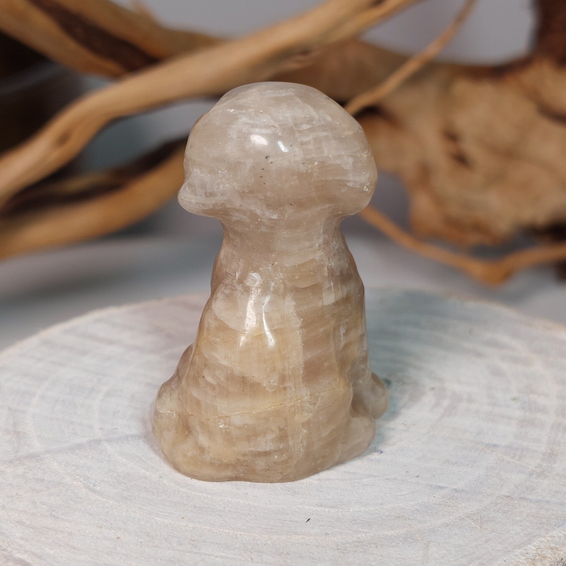 Regenboog Maansteen / witte Labradoriet hond. Deze Maansteen komt uit India en heeft heel veel blauwe en zilveren flash . Kan zelfstandig staan. De kwaliteit van deze Maansteen is prachtig, mooier in het echt. Maansteen diertje is 4cm. Krachtdier, totemdier.