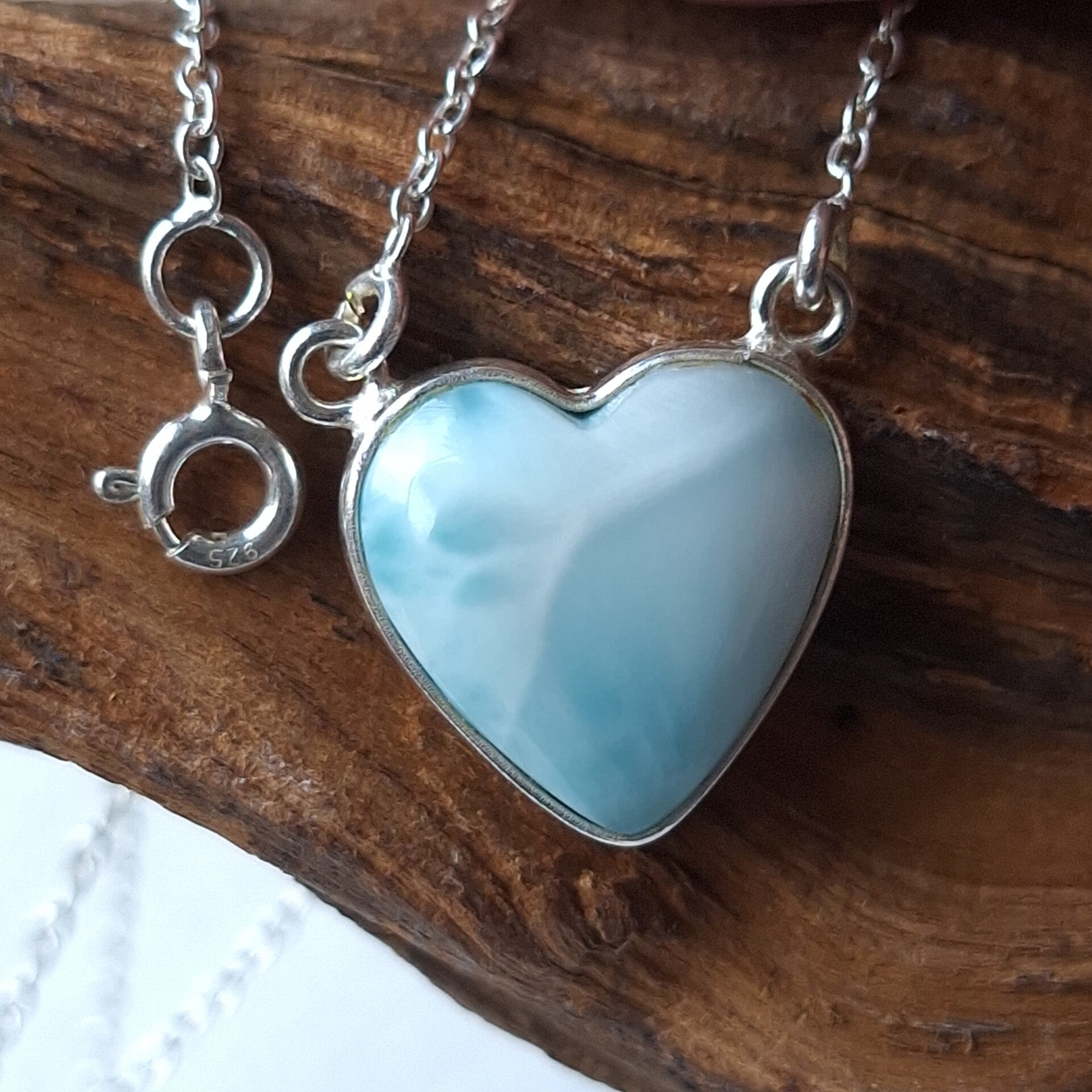 Larimar hart 925 zilveren hanger met prachtige kwaliteit Larimar met ketting.