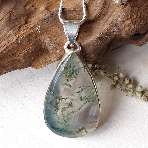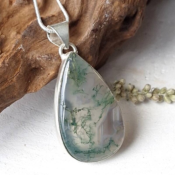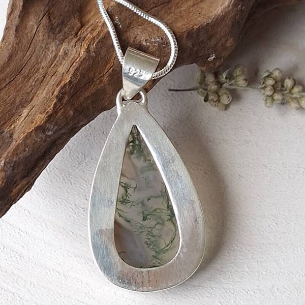 Mosagaat. 925 zilveren hanger met top kwaliteit Mosagaat