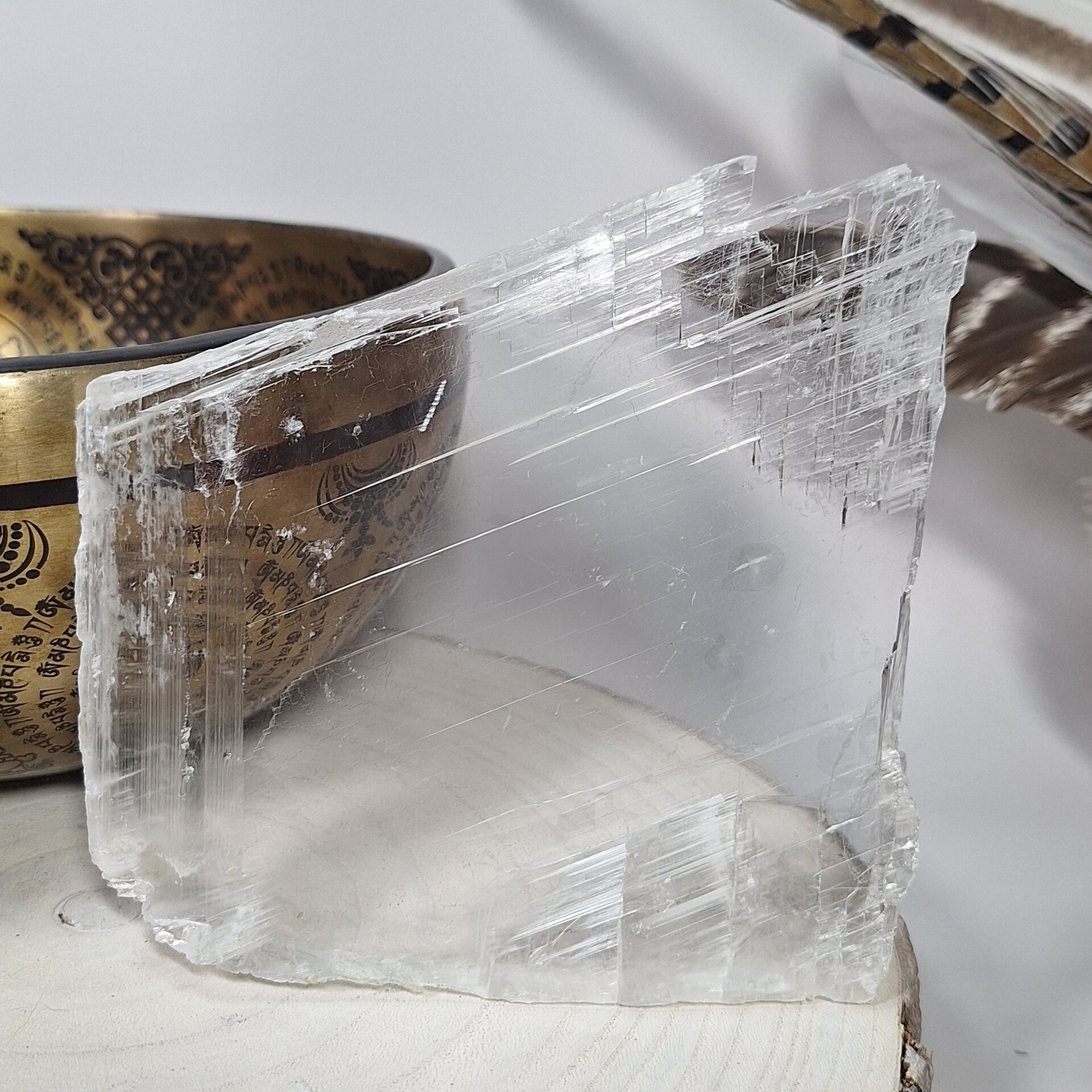 Mariaglas. Prachtige grote super heldere seleniet plak / schijf. Ideaal om andere stenen mee te reinigen en op te laden